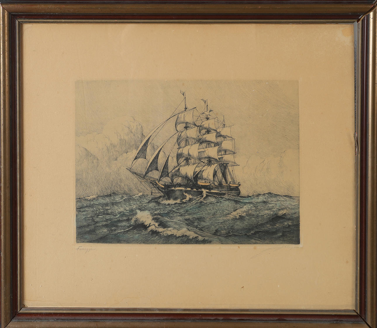 5023262. OIDENTIFIERAD KONSTNÄR. “Full rigger”, etching, indistinctly signed.