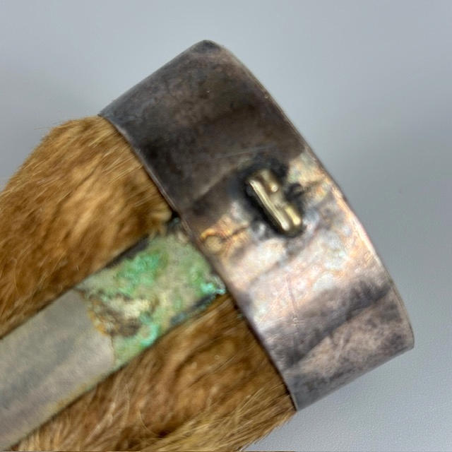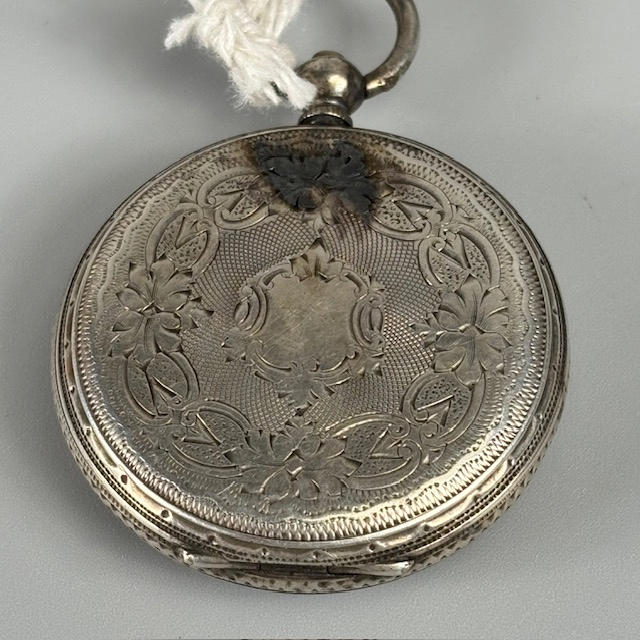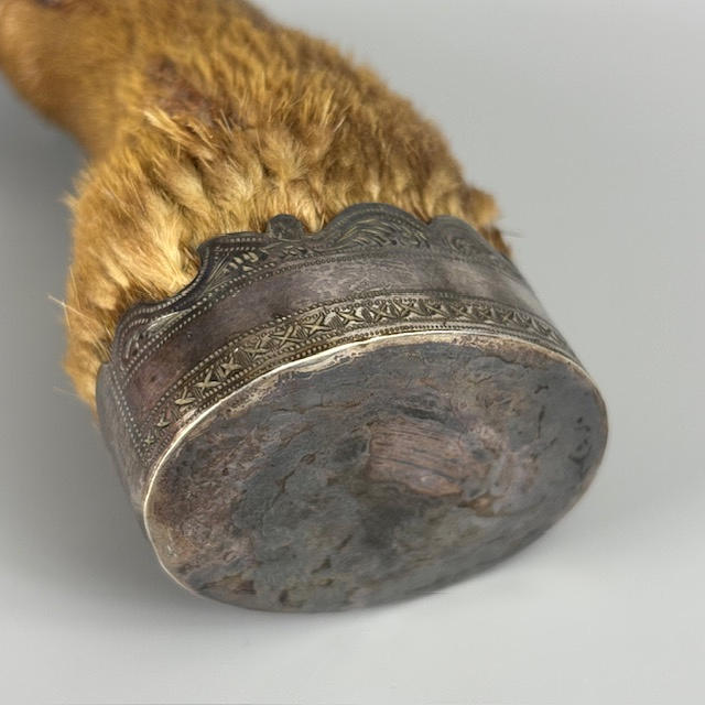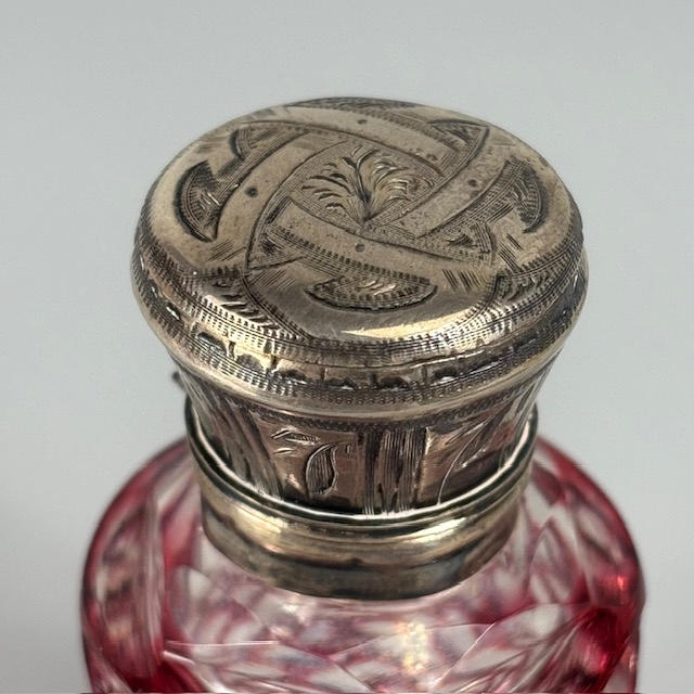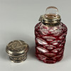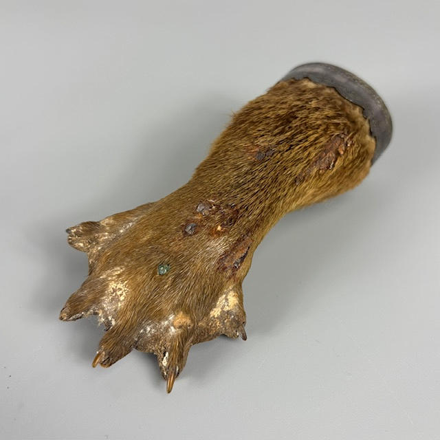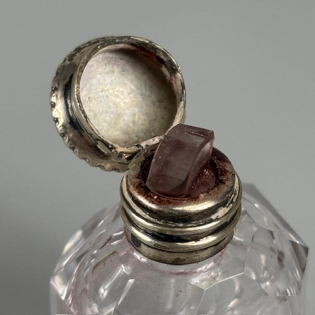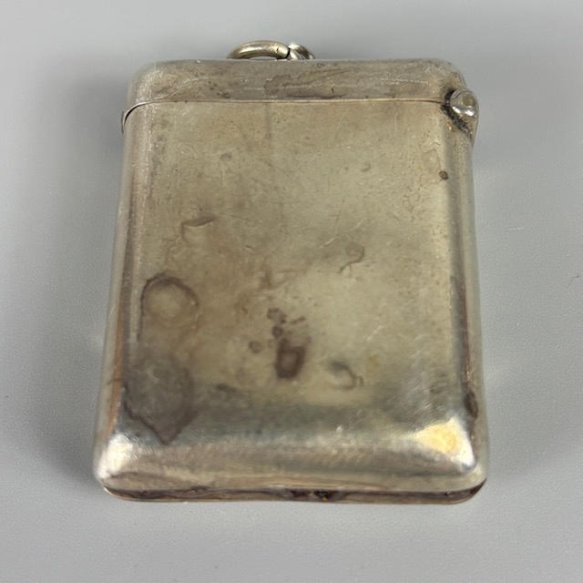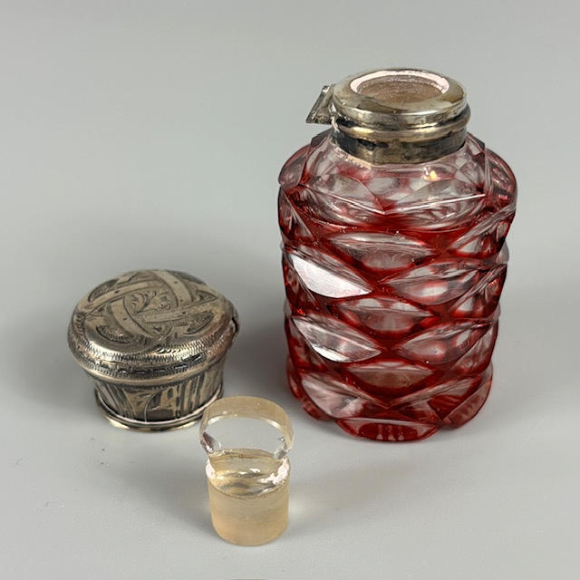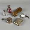 Silver hallmarked vesta case approximately 31g, silver hallmarked rouge pot approximately 11g, two silver topped perfume bottles, 800 silver cased ladies fob watch, silver mounted otter paw and silver dress ring.