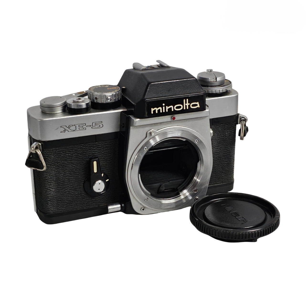 Minolta XE-5 without lens. 10x15x6 cm approximately.
