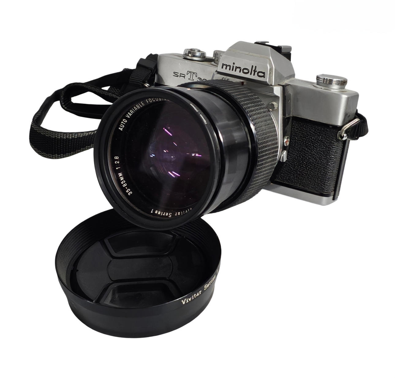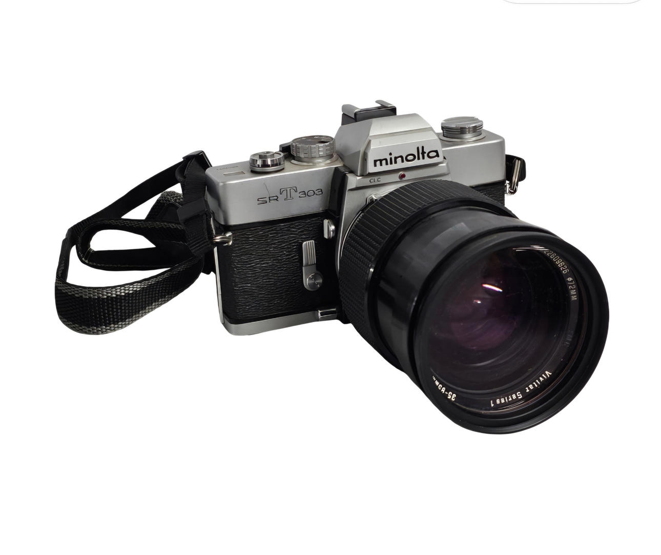 Minolta SRt303 with Vivitar Series 1 35-85 mm lens. 11x19x15 cm.