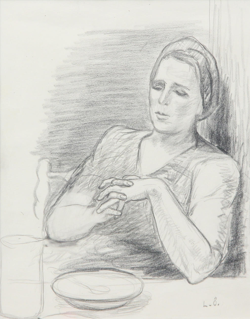 5023501. OIDENTIFIERAD KONSTNÄR. PENCIL DRAWING, signed L Ö.
