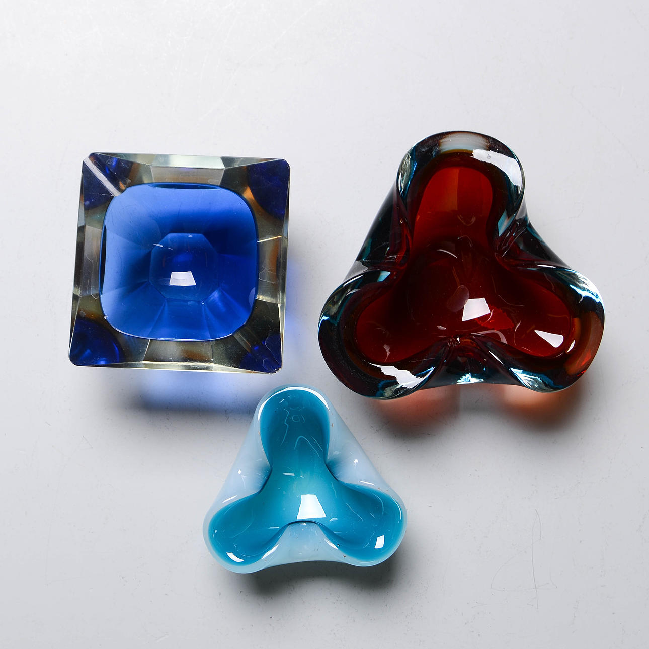 Glass. Diameter: 15, 12 & 11 cm.