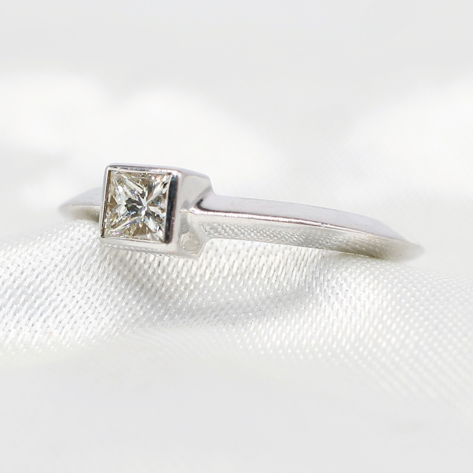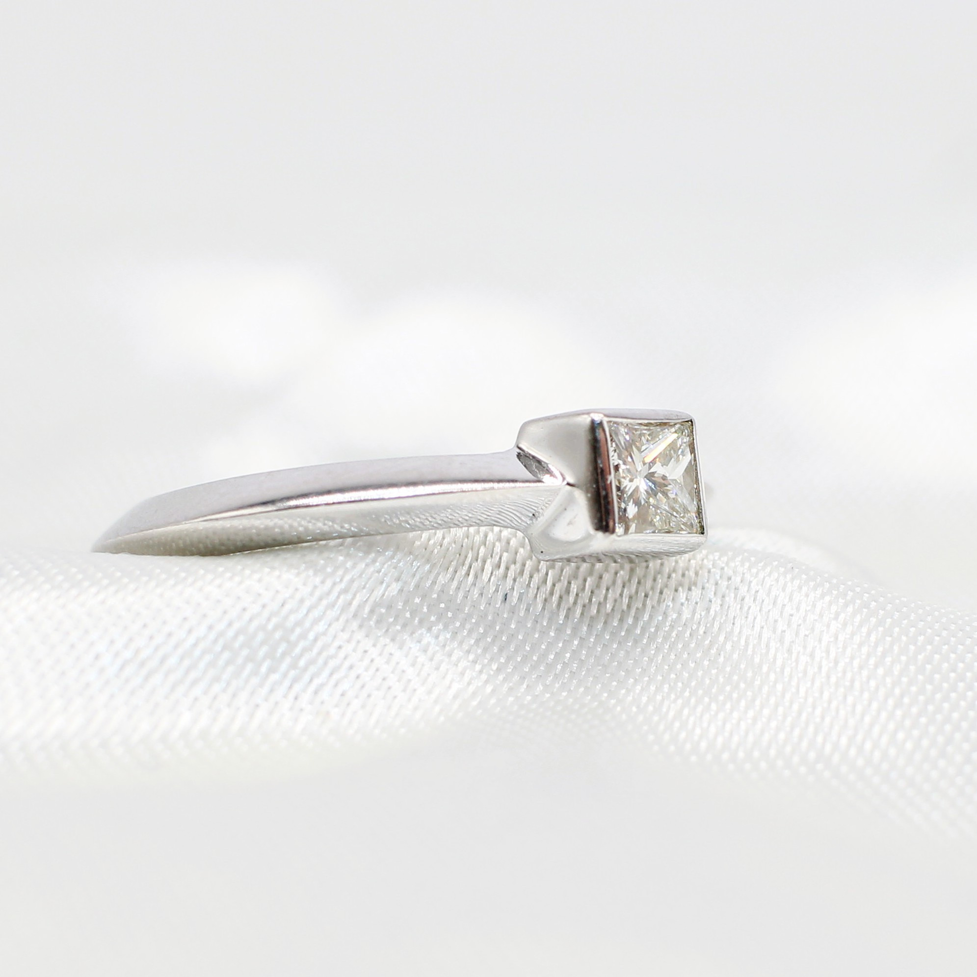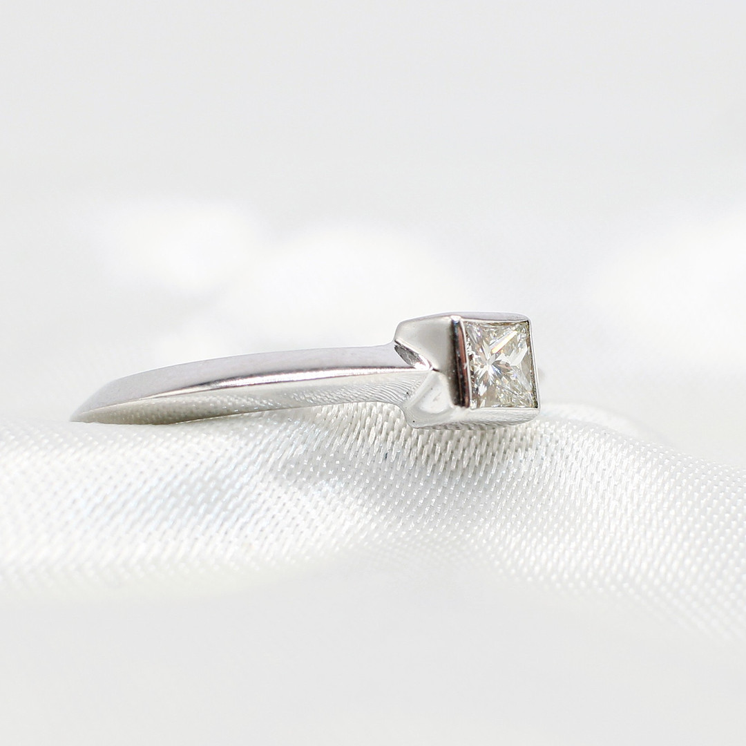 5023539. 18K PRINCESS CUT DIAMOND SOLITAIRE RING.