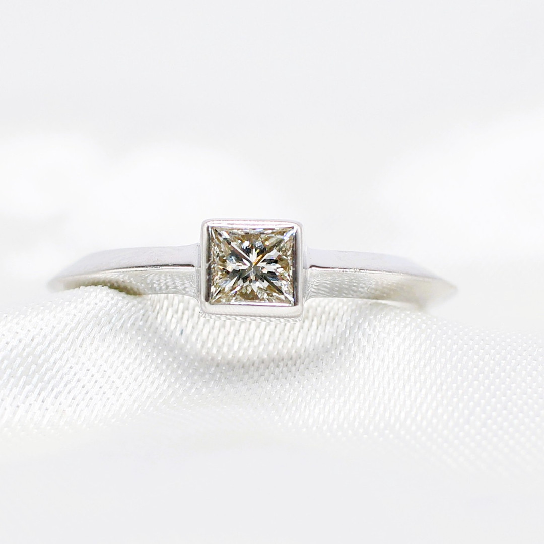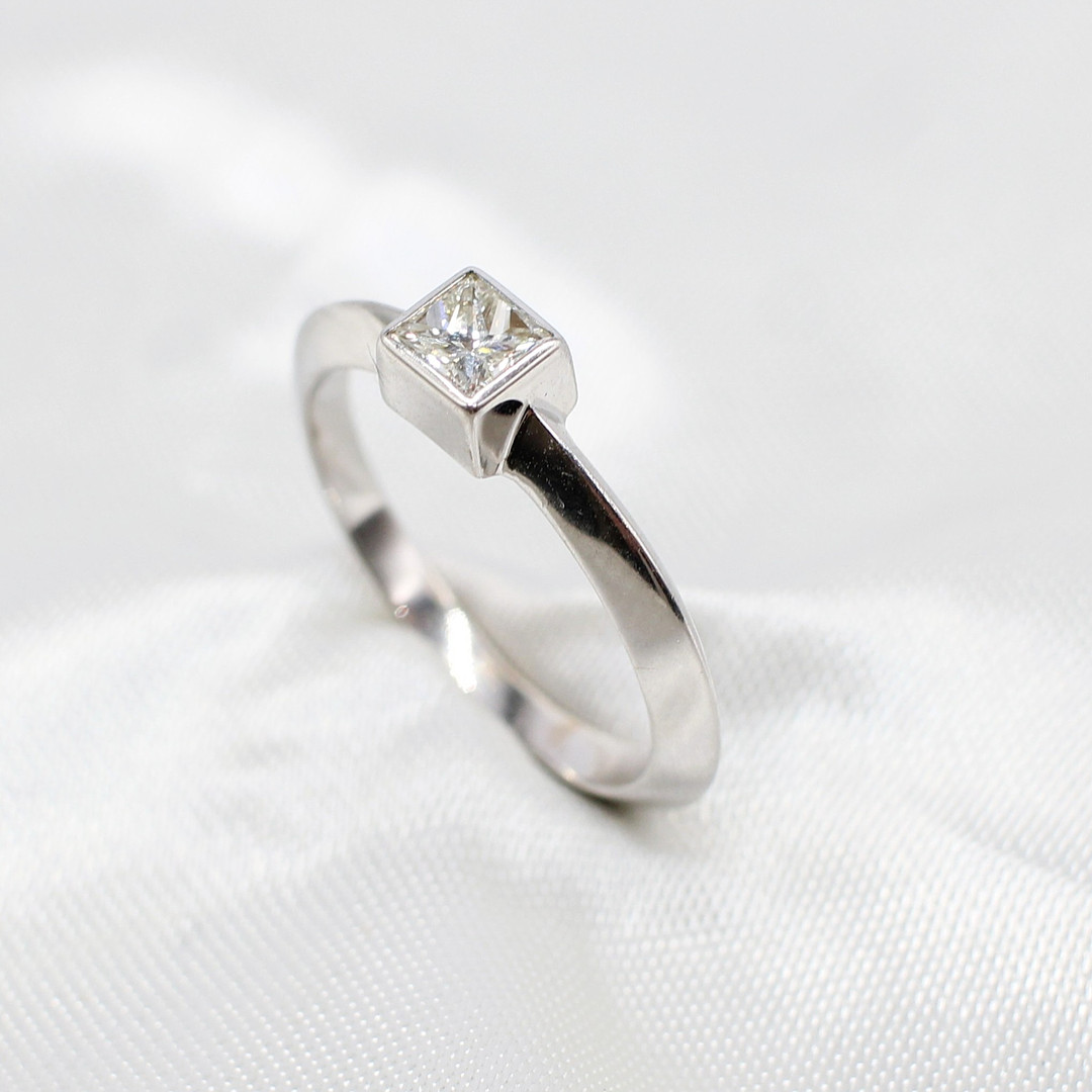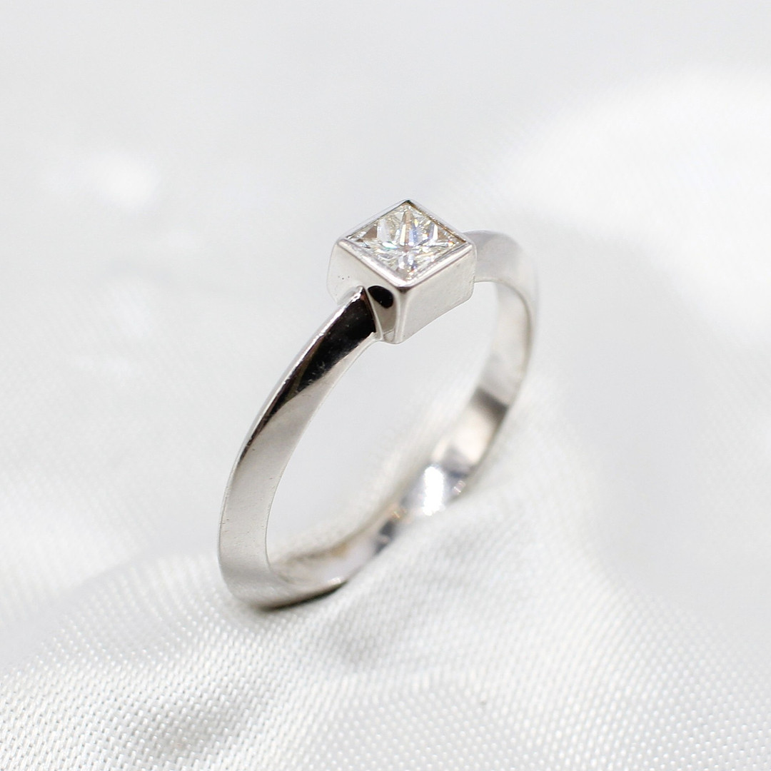 5023539. 18K PRINCESS CUT DIAMOND SOLITAIRE RING.
