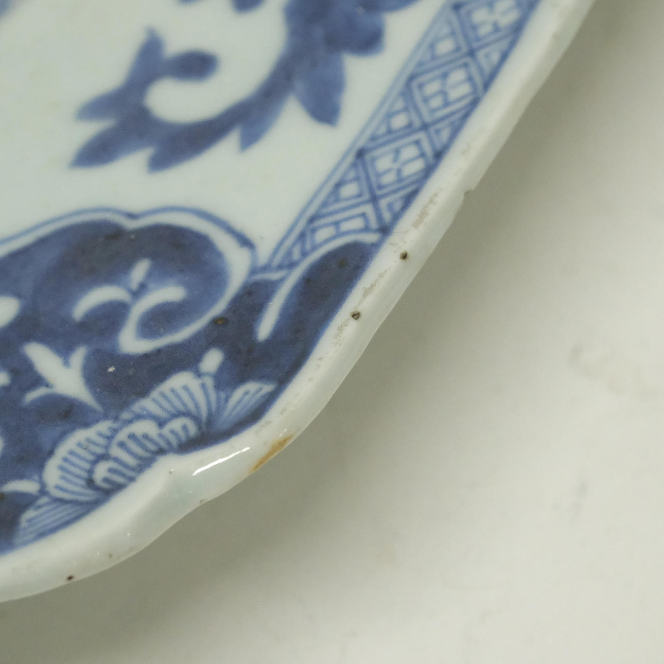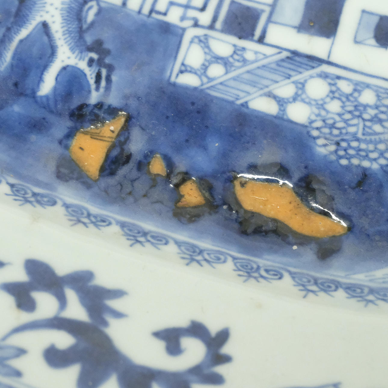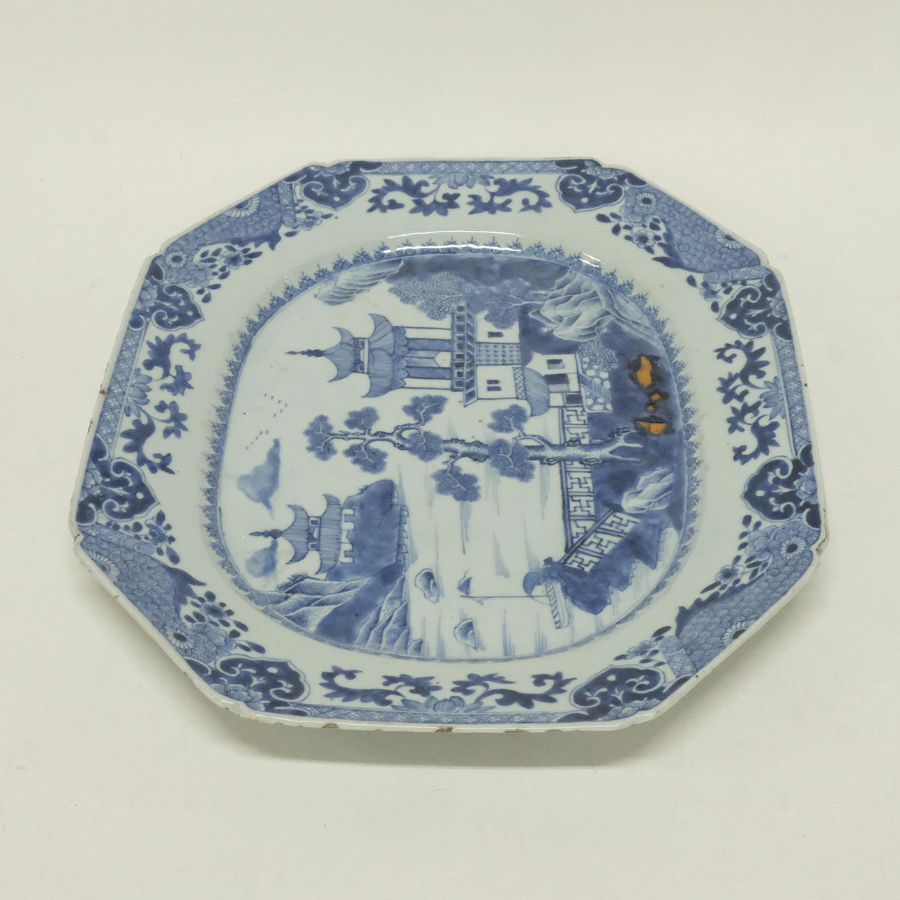 Porcelain, with pagoda landscape painted in blue against white under the glaze, second half of the 18th century, 41x33,5 cm.