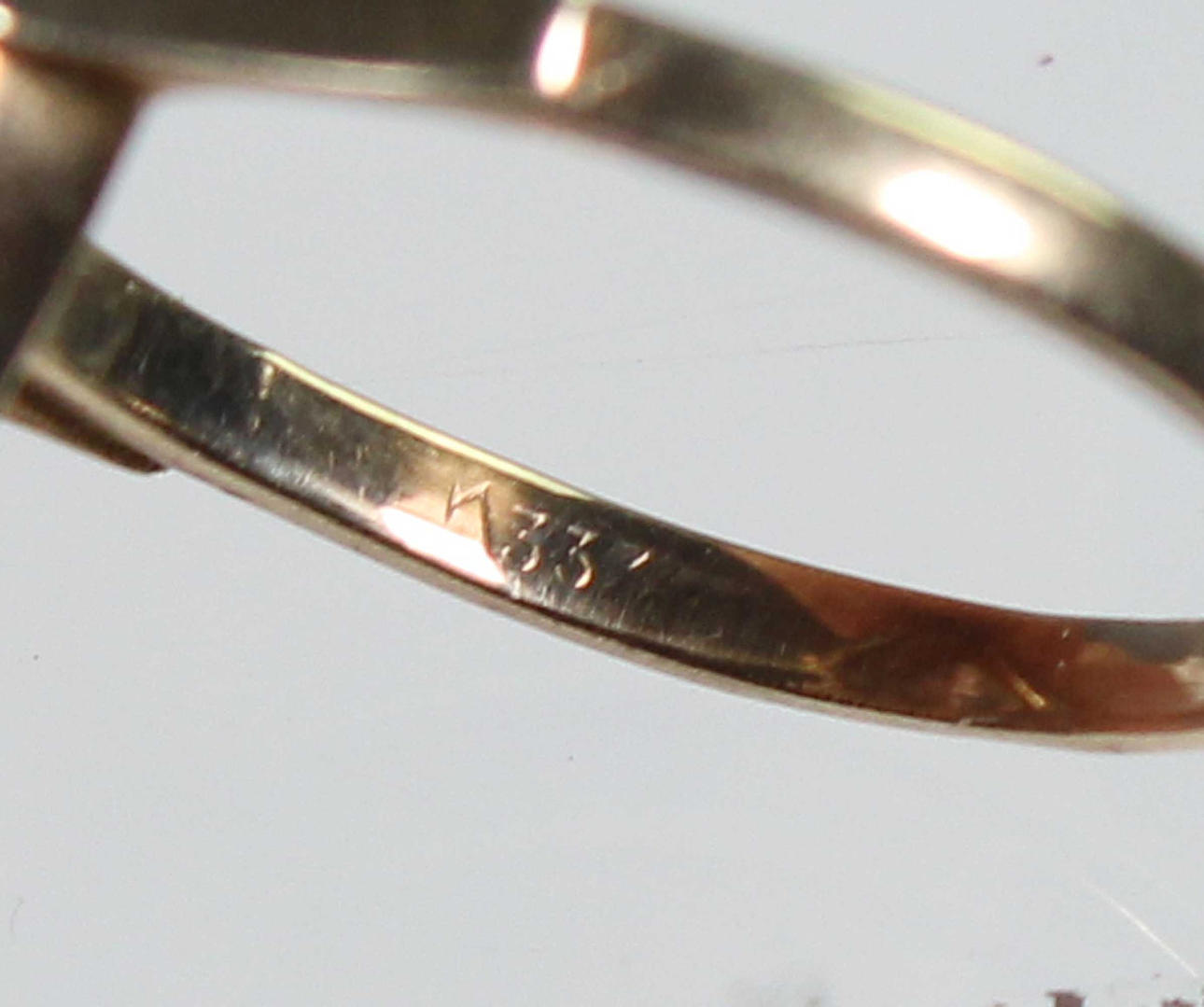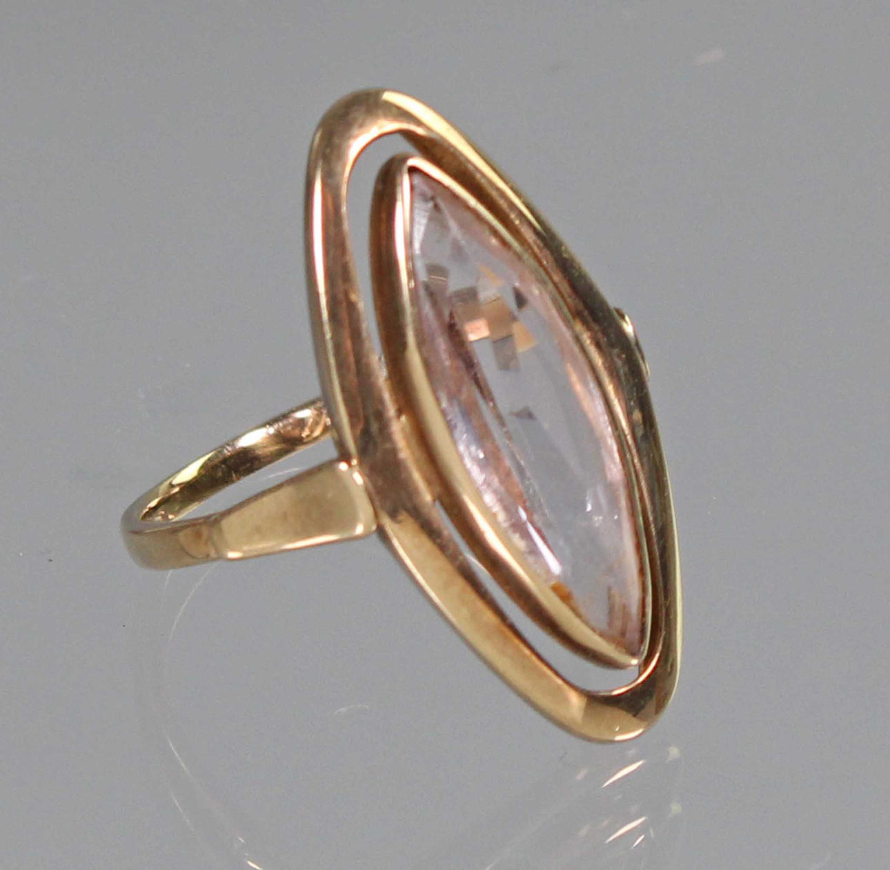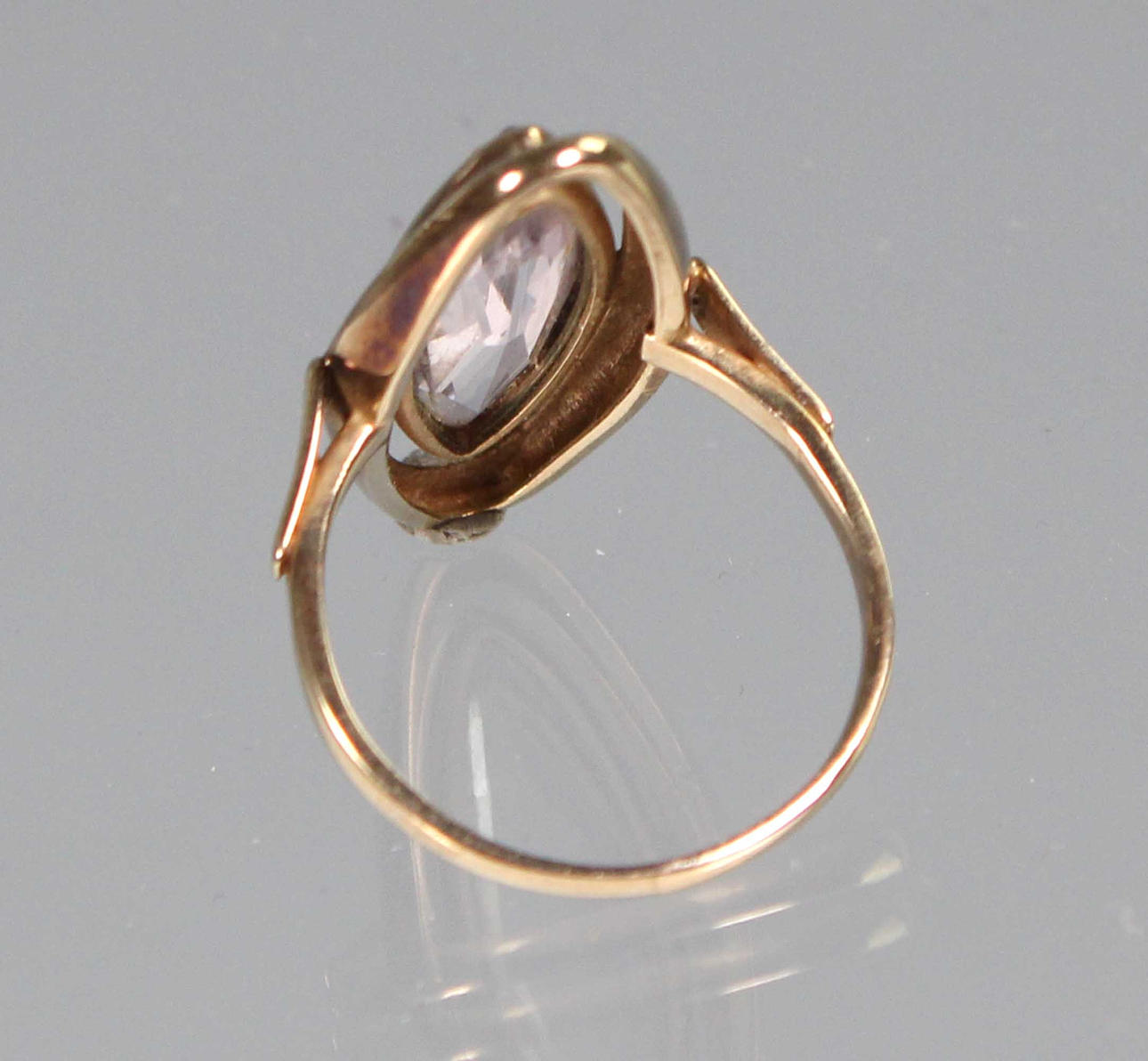 Gold ring with purple stone, in 333 gold, navette-shaped ring head, ring head size 26x12 mm, ring size 54, weight 3.8 grams.