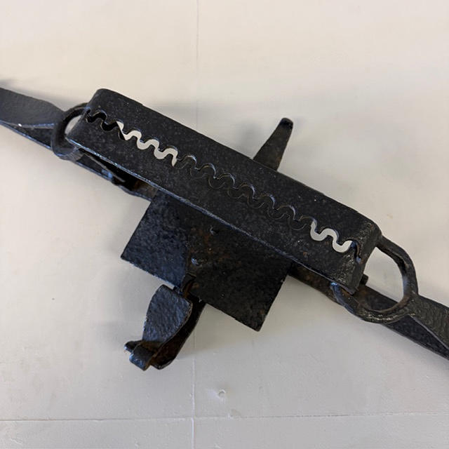 Antique 19th century Victorian forged iron poachers trap, approximately 100cm in length.