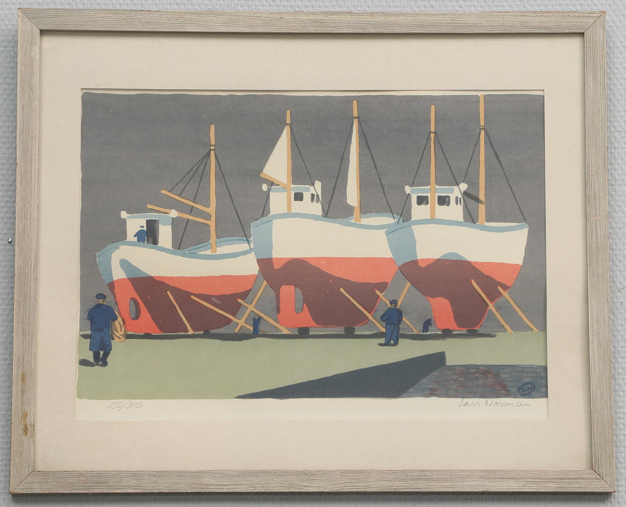5023749. LARS NORMAN. Colour lithograph, boats, signed, numbered 150/310.