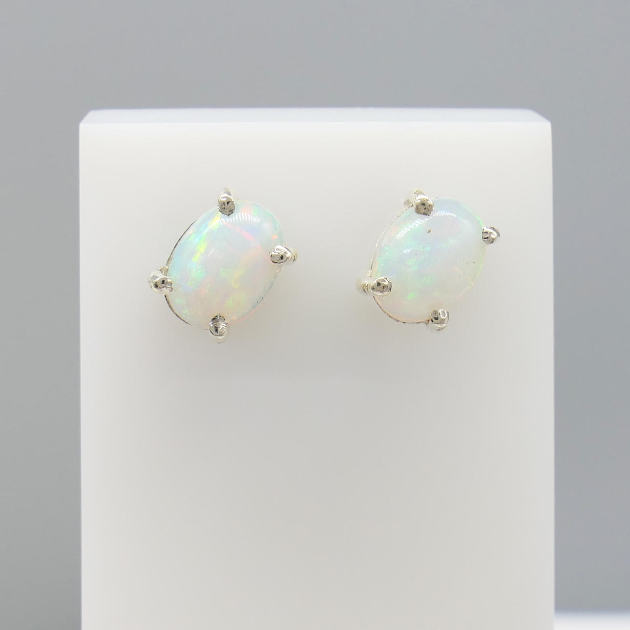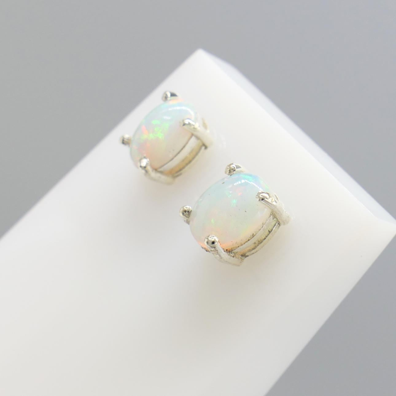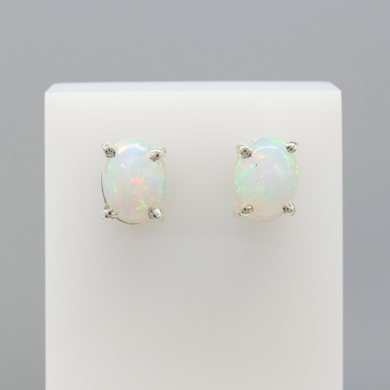 Gemstones: natural Ethiopian white opal; oval cabochon cut; 1.70 carat total approx; 8 x 6mm each