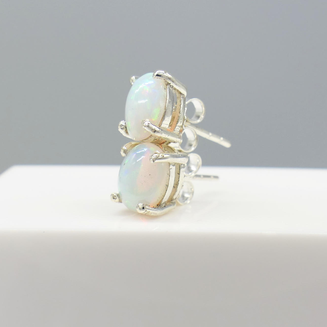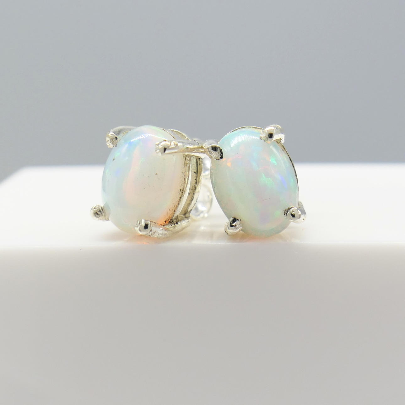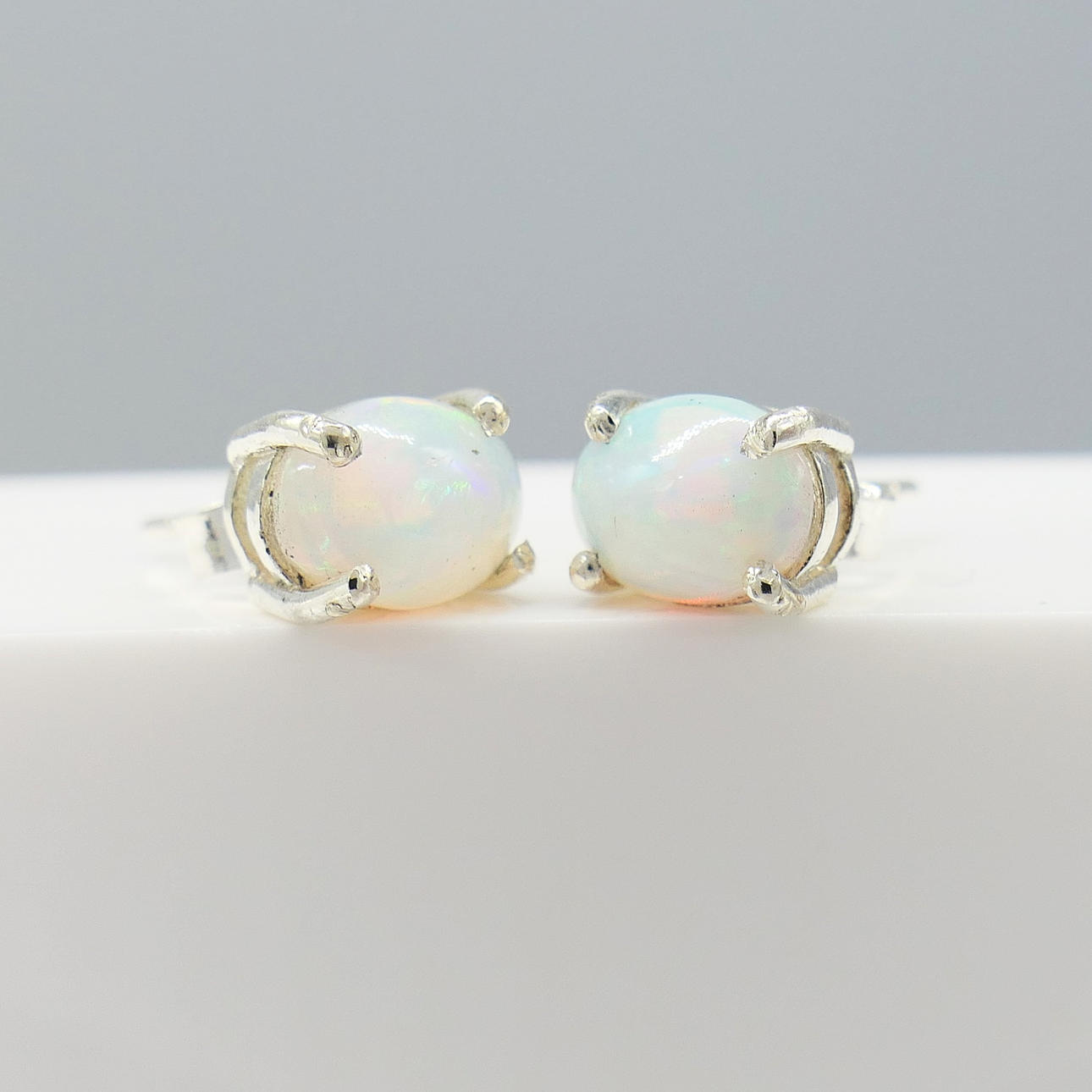 Gemstones: natural Ethiopian white opal; oval cabochon cut; 1.70 carat total approx; 8 x 6mm each