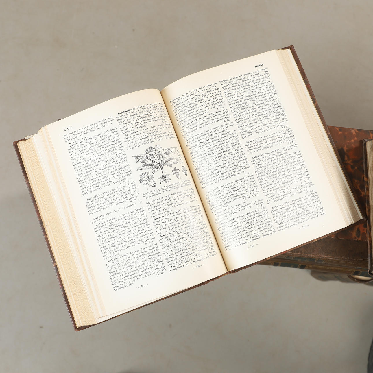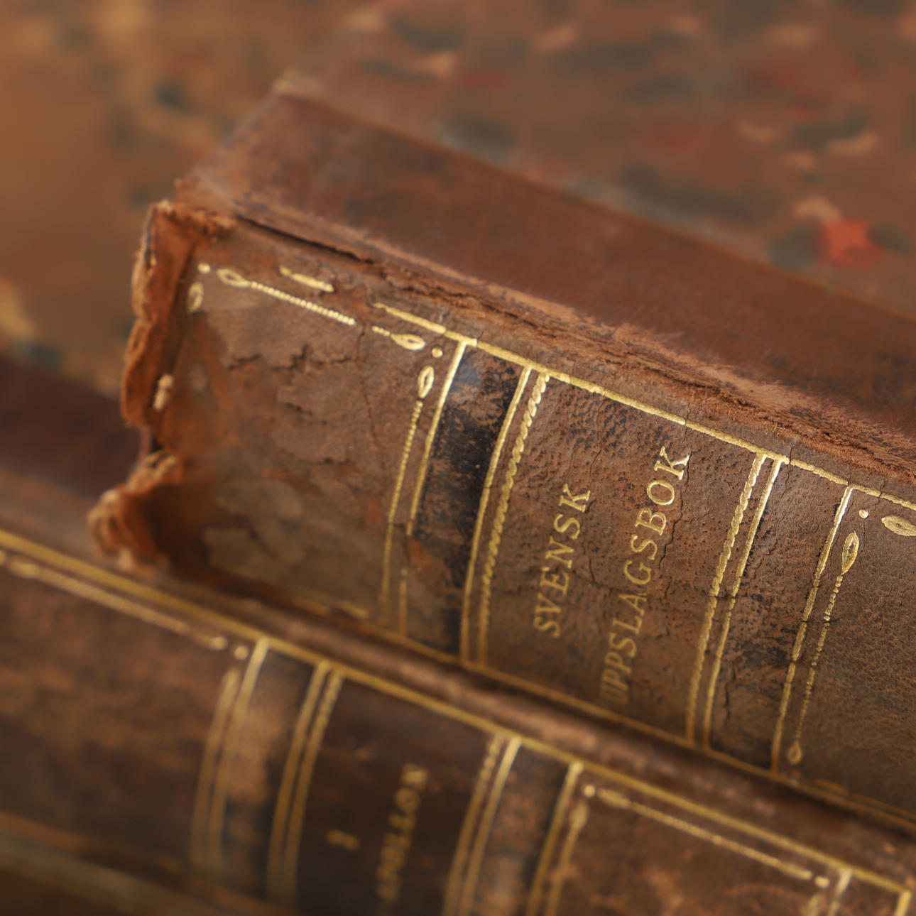 BOOKS, ca 33 leather bands, Swedish encyclopedia.