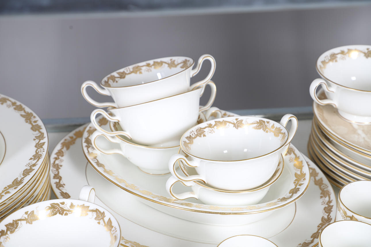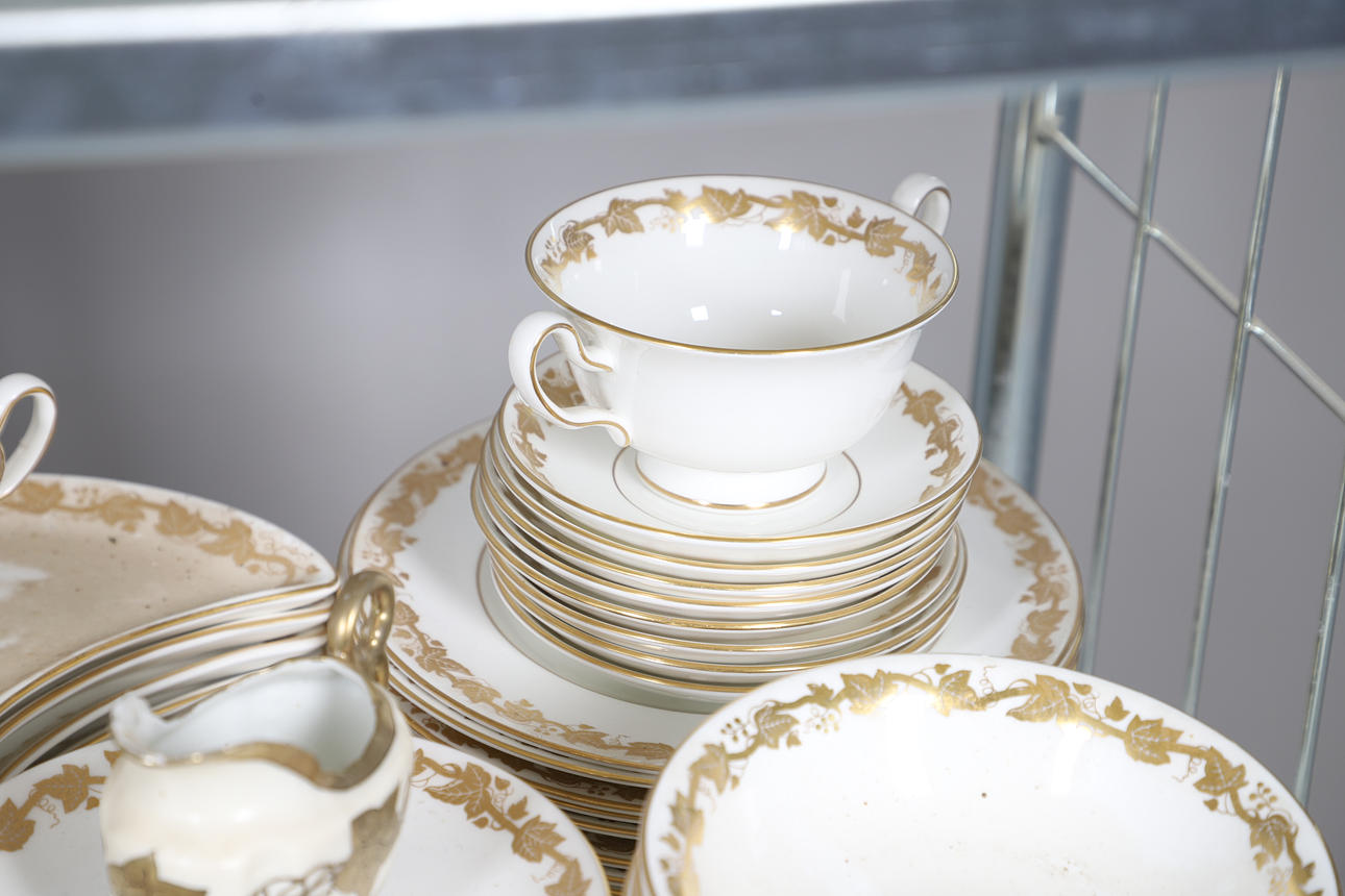 to include dinner plates, coffee cans and saucers, side plates, kidney shaped dishes, bowls, soup coupes and saucers, etc (qty).