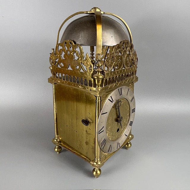 ANTIQUE ENGLISH LANTERN CLOCK.