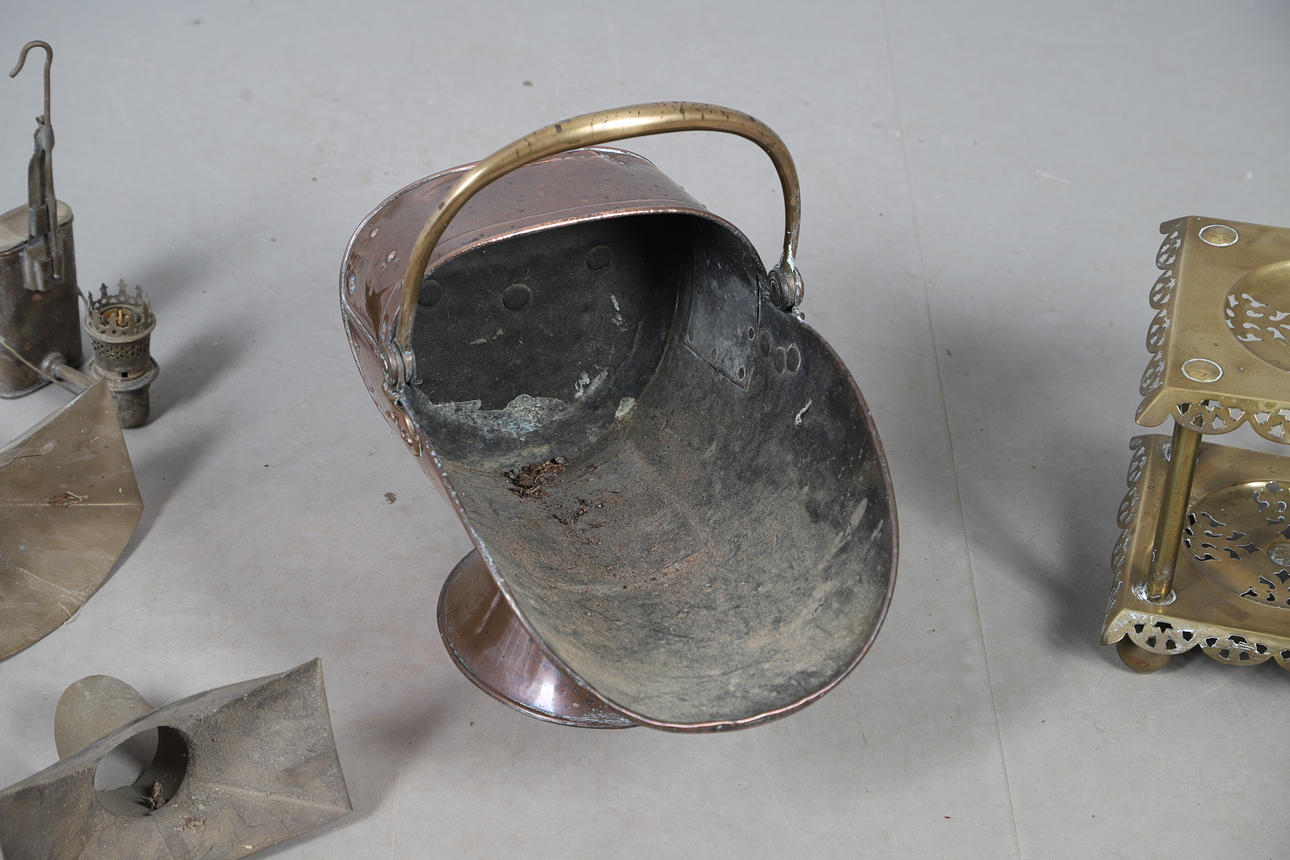 5024172. A COPPER COAL SCUTTLE, BED PAN, AND OTHERS.