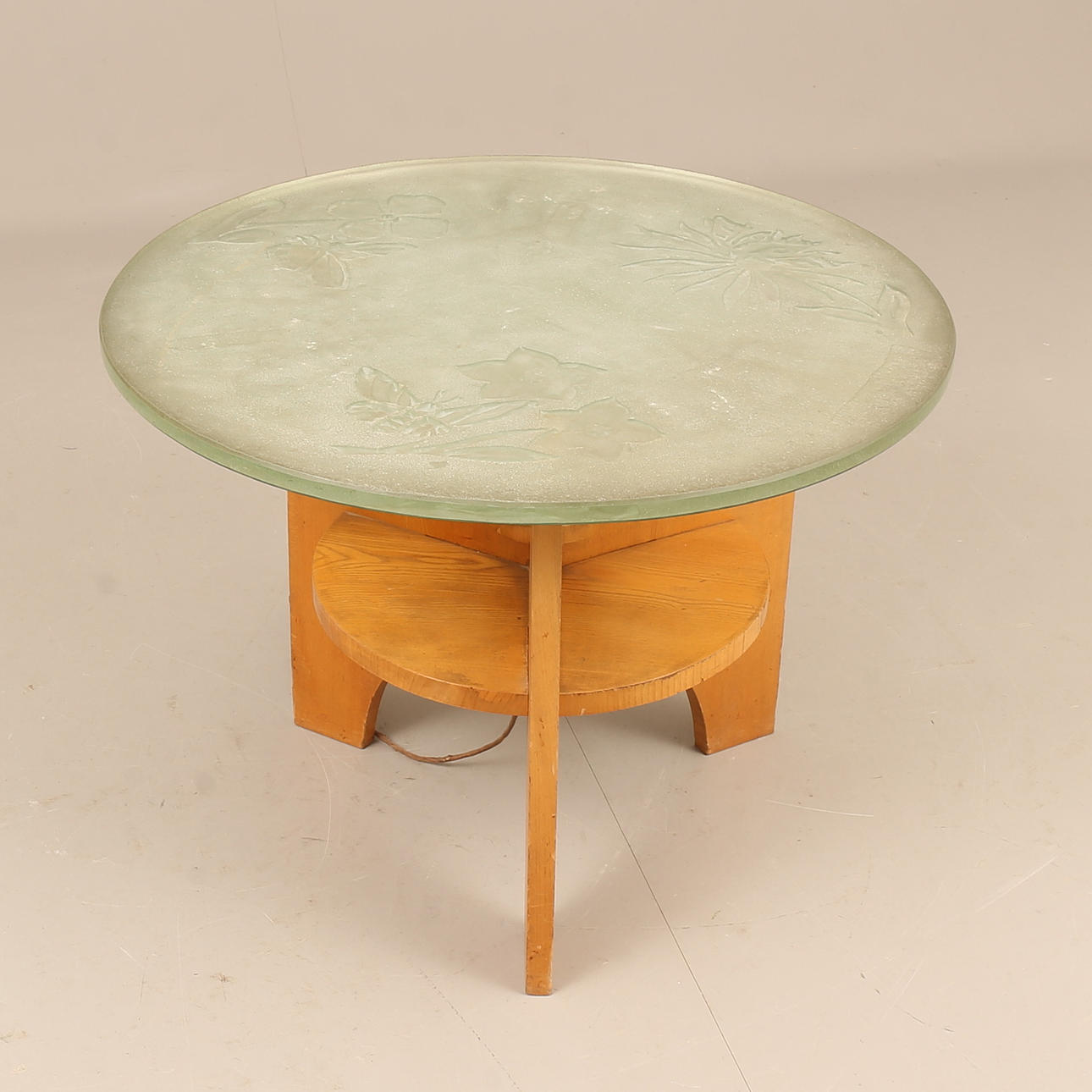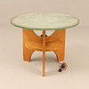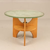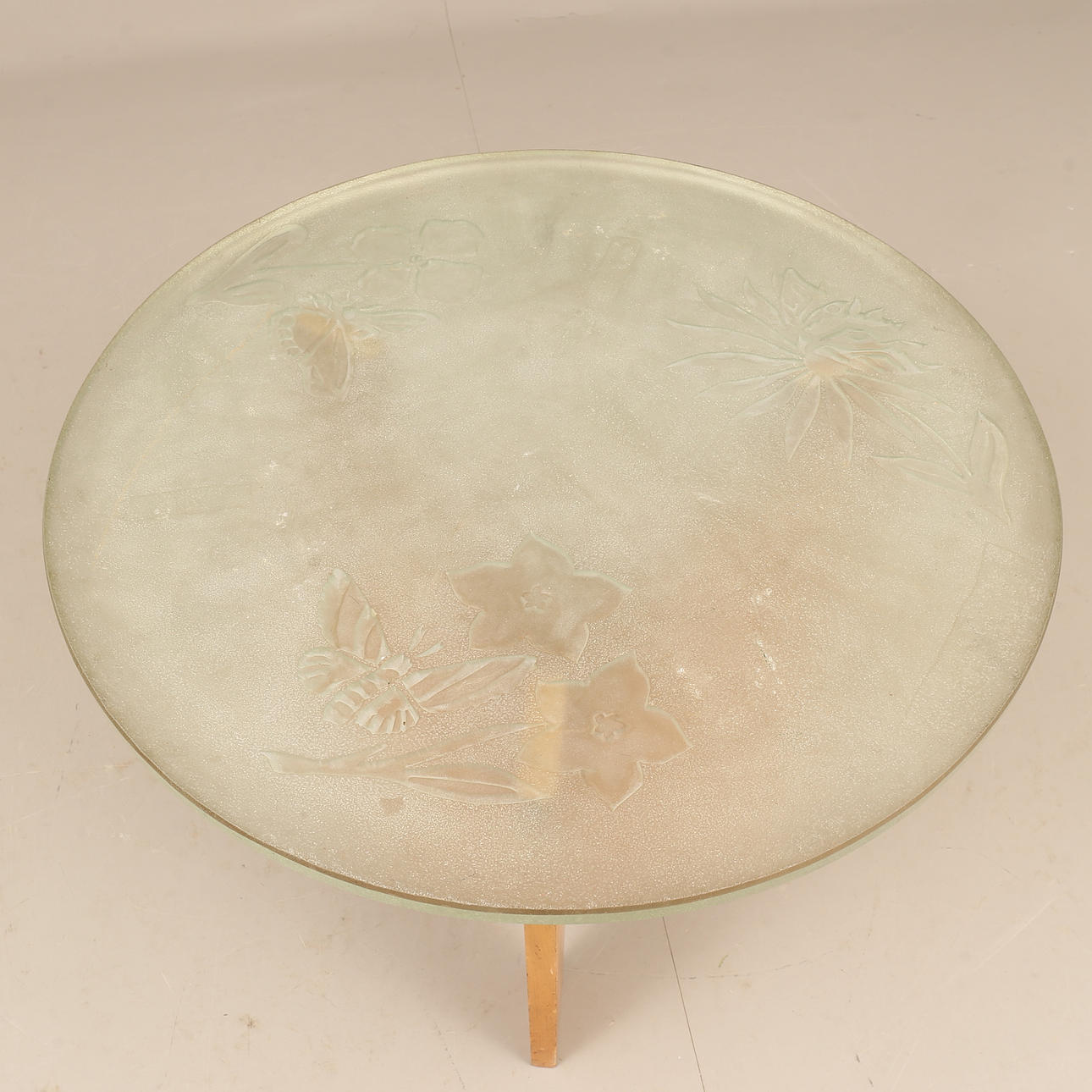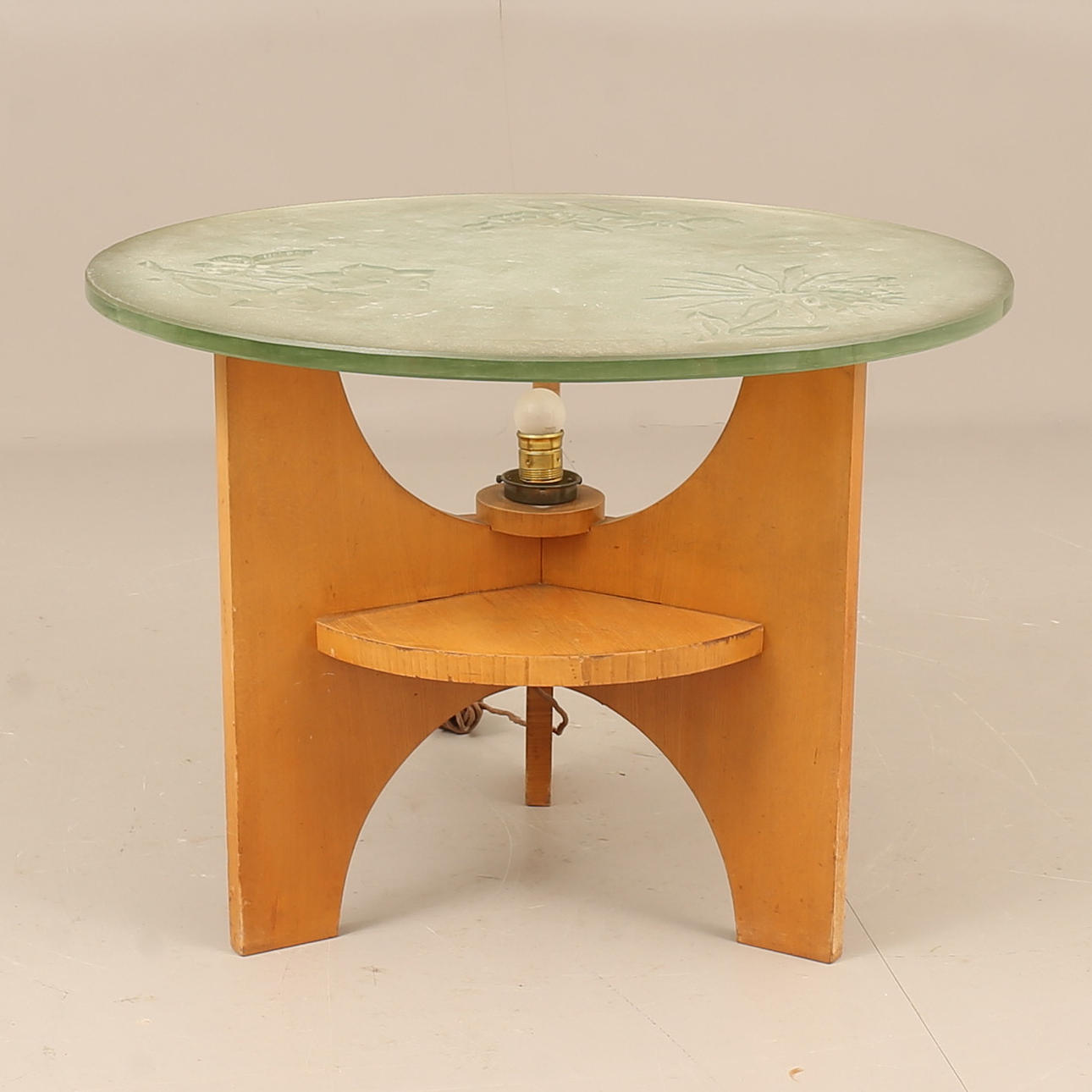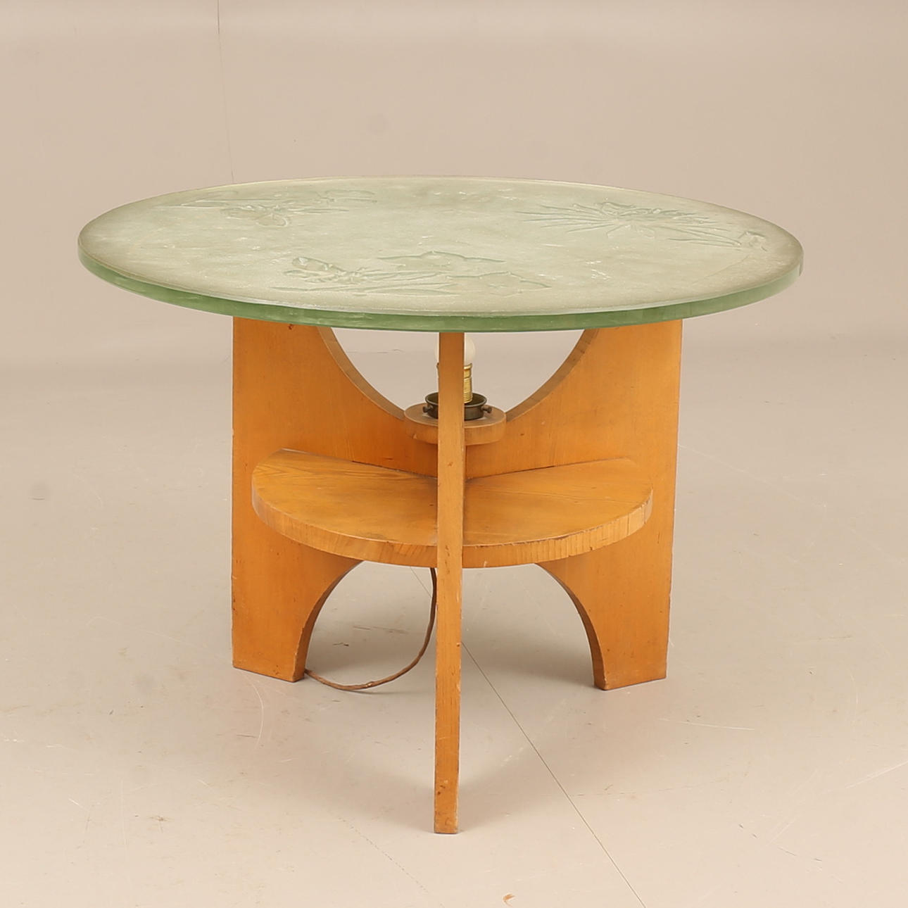 Slice of ground raw glass, illumination under disc. Height approx. 57 cm, diameter approx. 80 cm.
