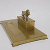 Writing stand with lion, stamped Ystad Bronze, height 13 cm, dimensions 18 x 38 cm.