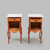 Marks, scratches, chipped edges. One cabinet is missing rings for the hardware.