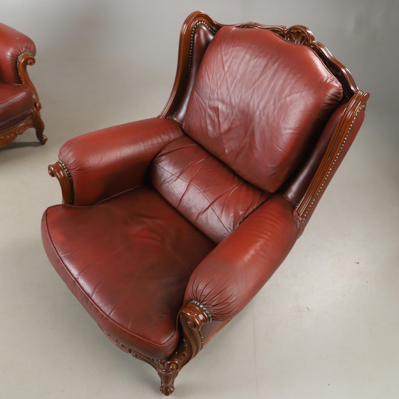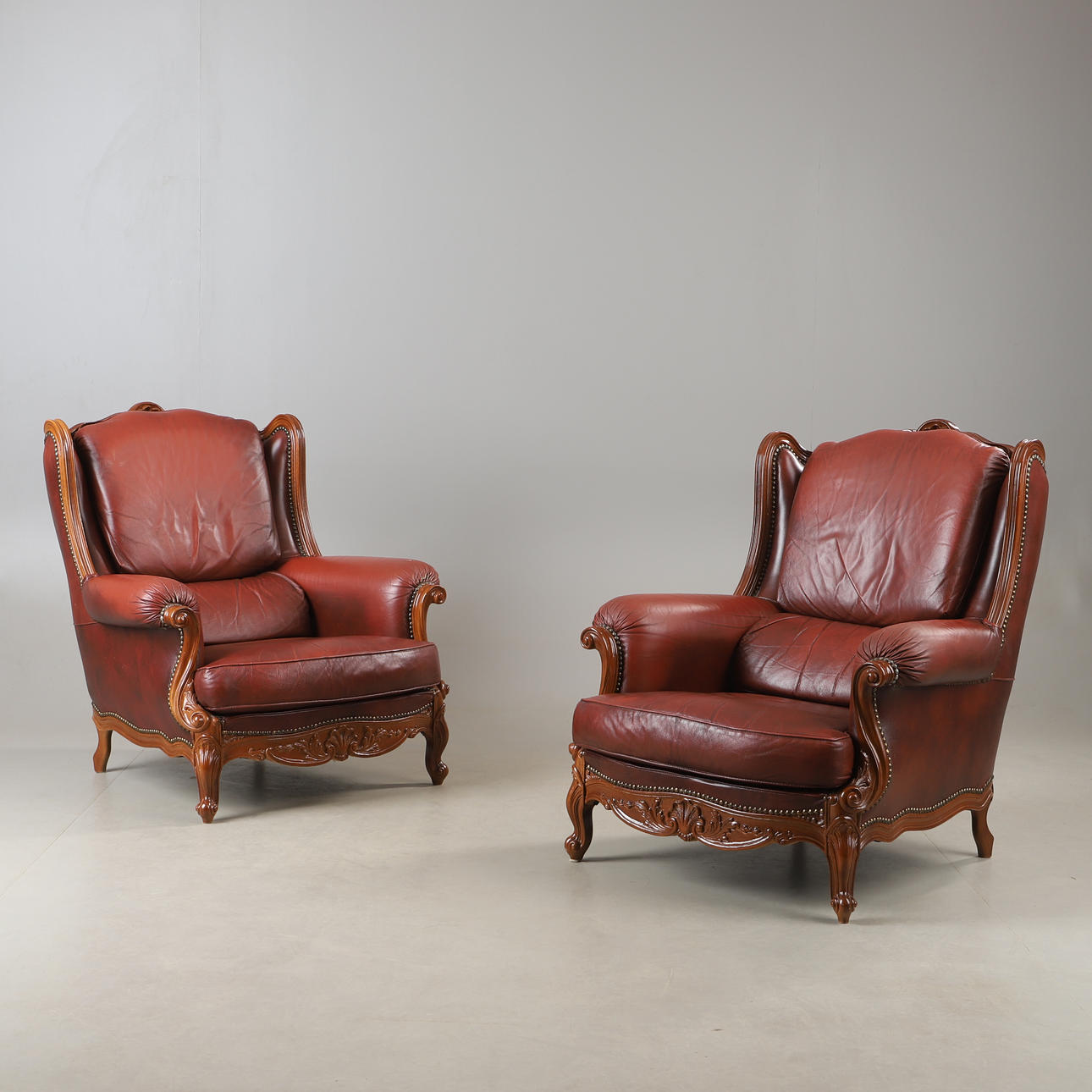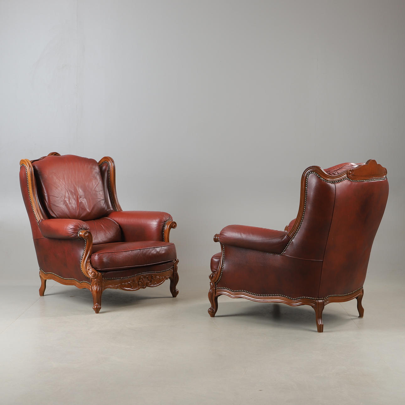 5024283. ARMCHAIRS, 1 pair, leather and beech, rococo style.