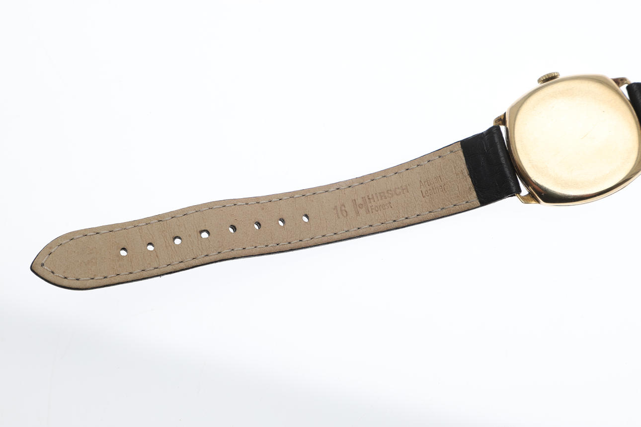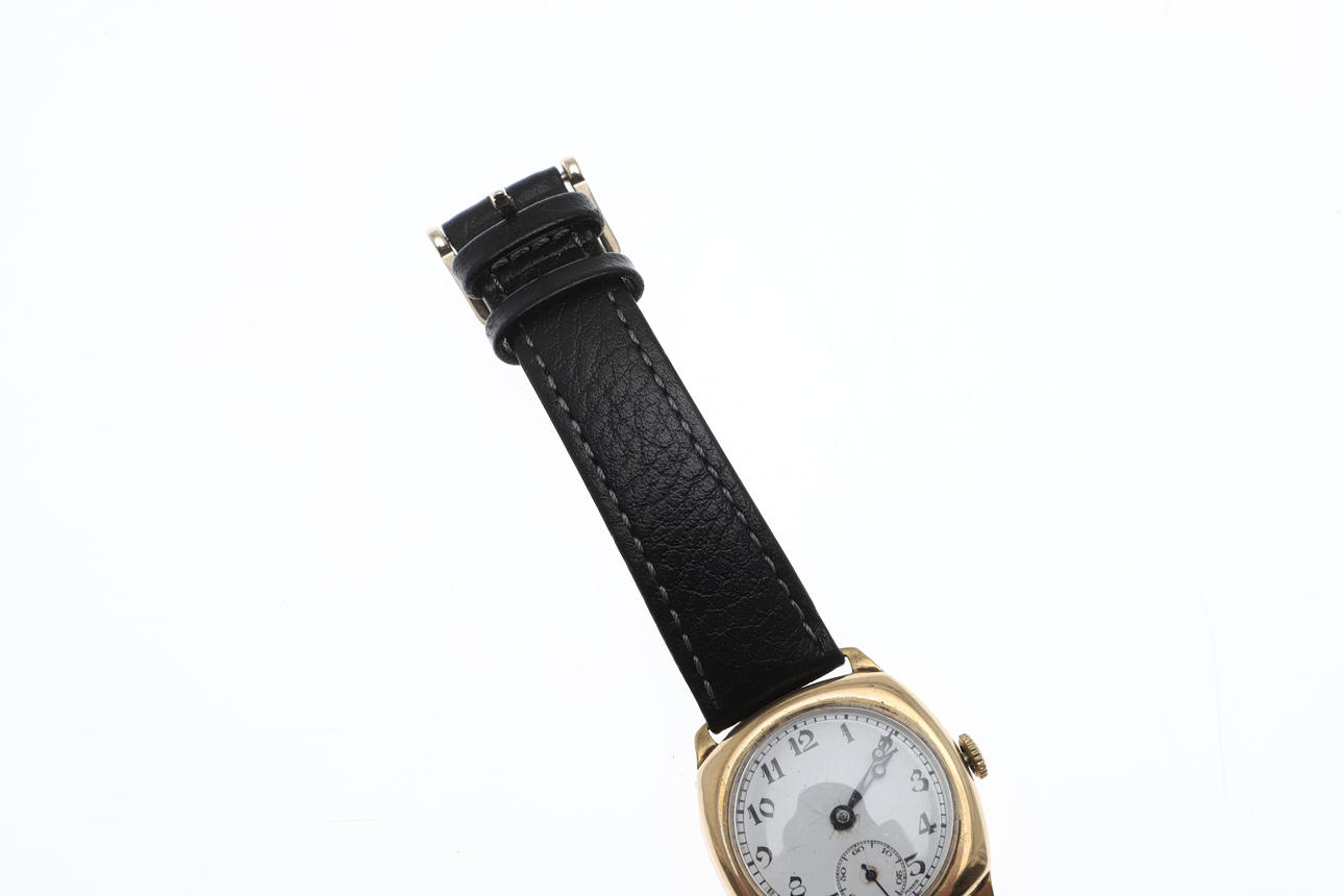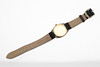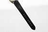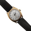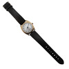 the circular white dial with black Roman numerals and subsidiary seconds dial, on a black leather strap, 28mm dia.