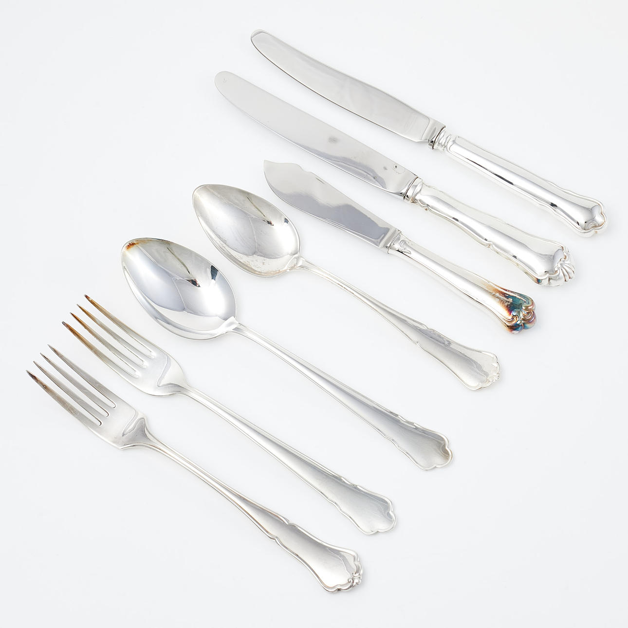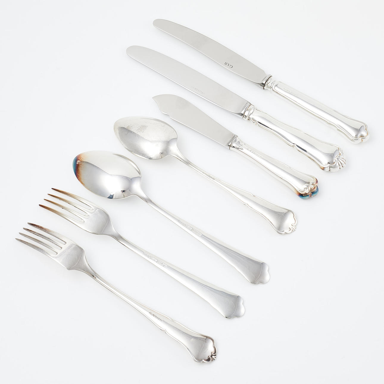 CUTLERY. 31 pcs, silver, Chippendale-style model, two mixed models.