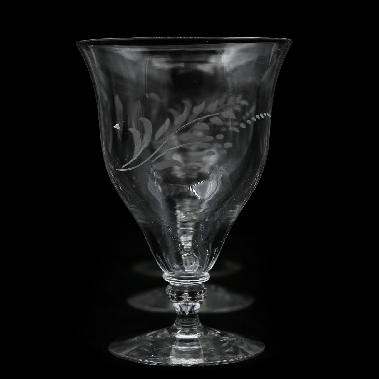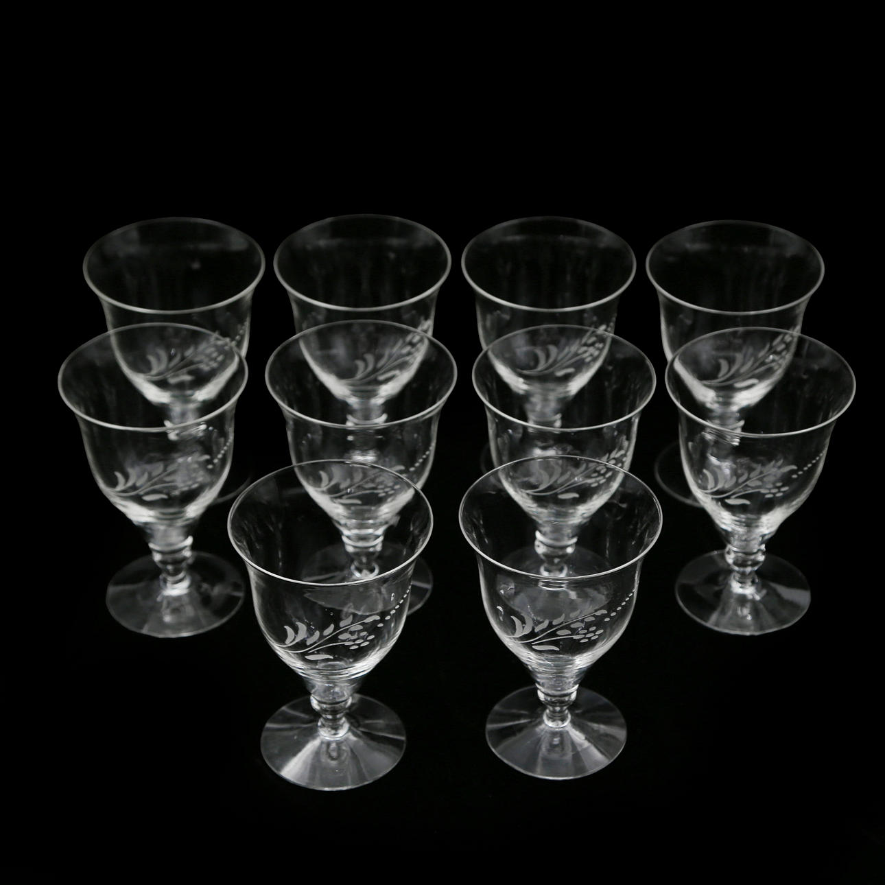 5024444. 10 WINE GLASSES WITH ETCHED DECOR.