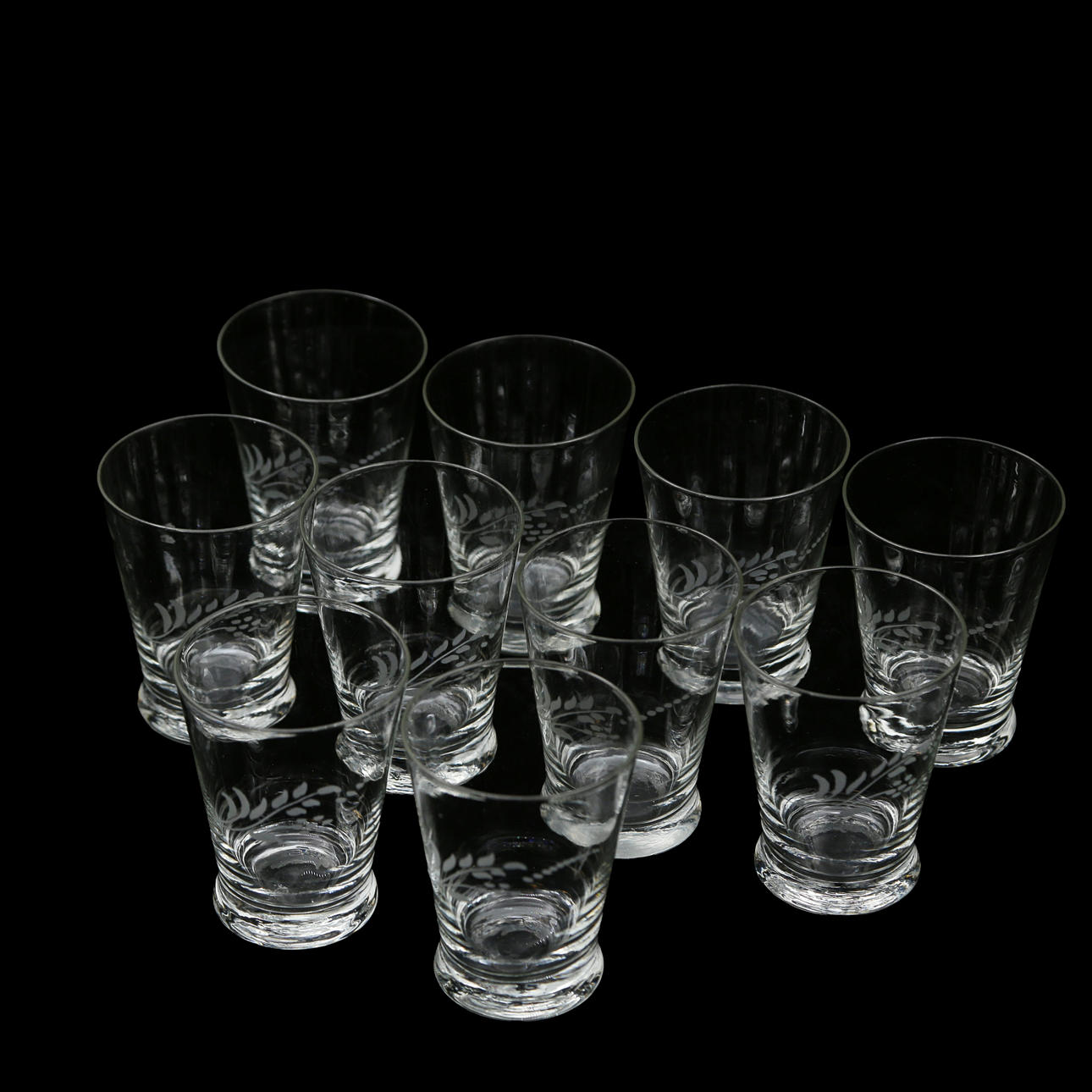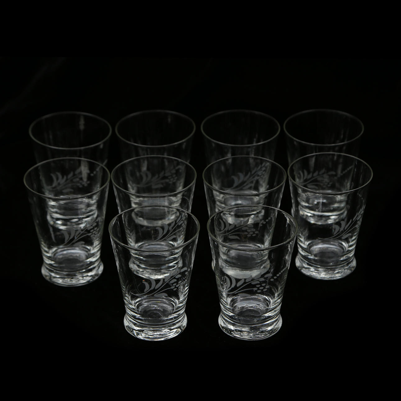 5024457. 10 SELTZER GLASSES WITH ETCHED DECORATION.