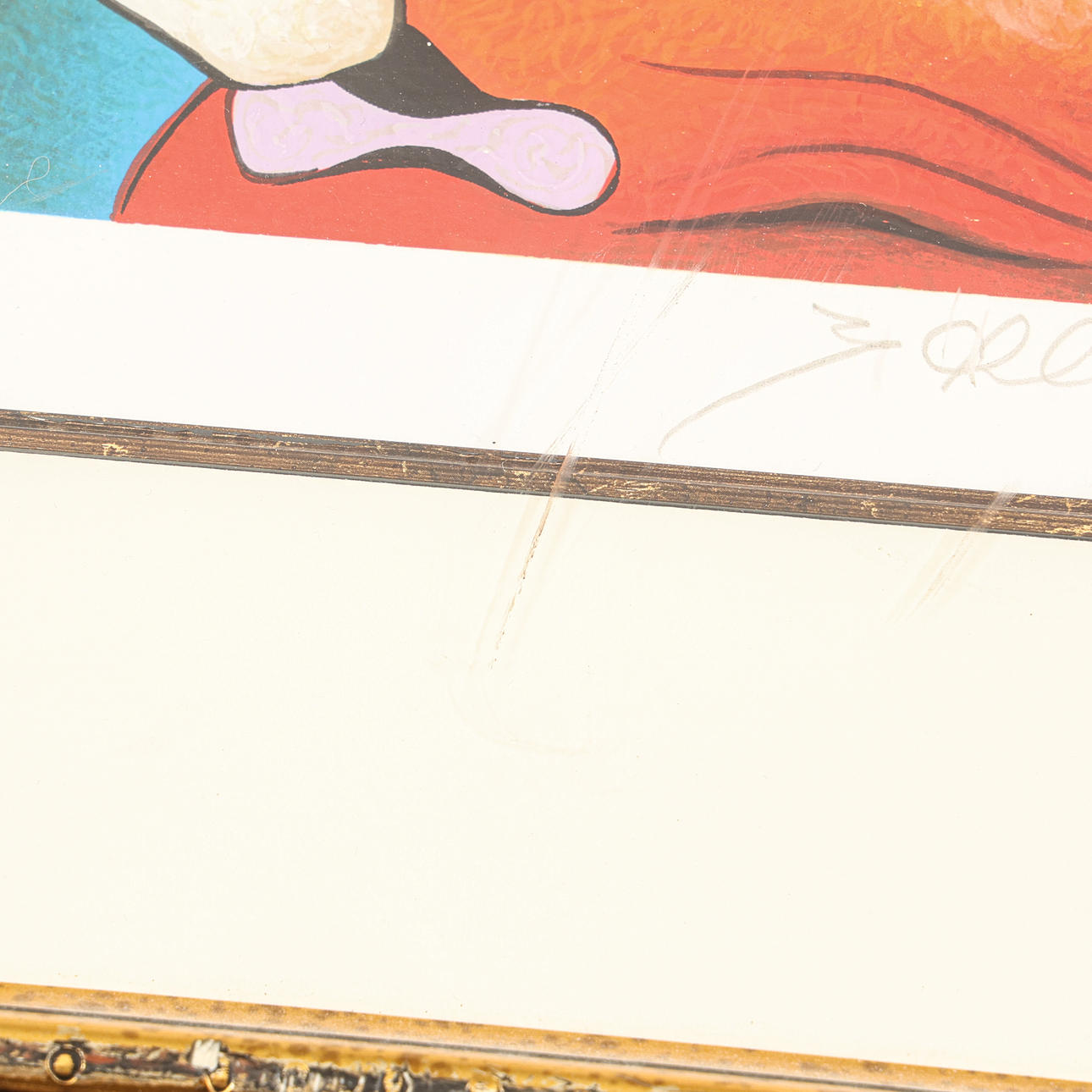 Not examined out of frame. Scratched Plexiglas.