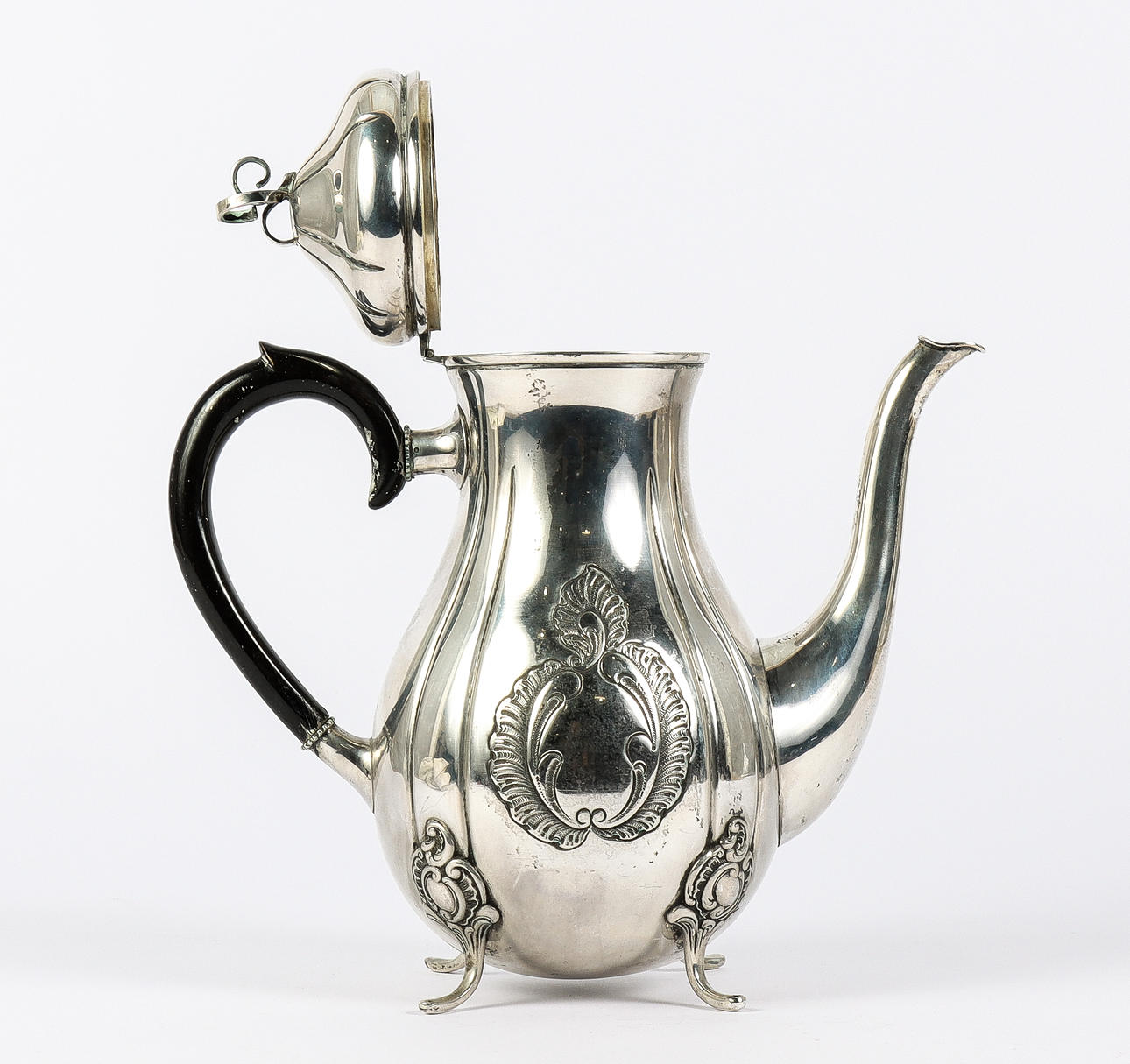 5024822. SERVING POT silver, with wooden handle.