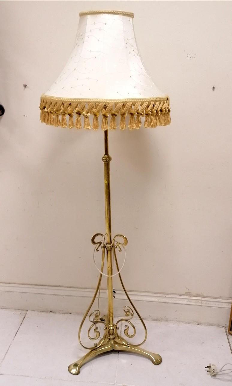 Antique brass Art Nouveau adjustable standard lamp (extended 215cm) t/w lampshade.