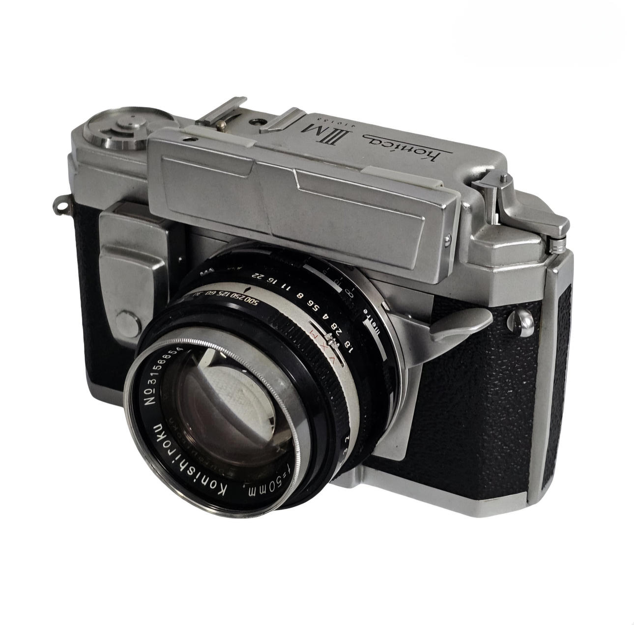 Konica IIIM with Konishiroku Hexanon 1:1.8 lens. 9x14x7 cm.