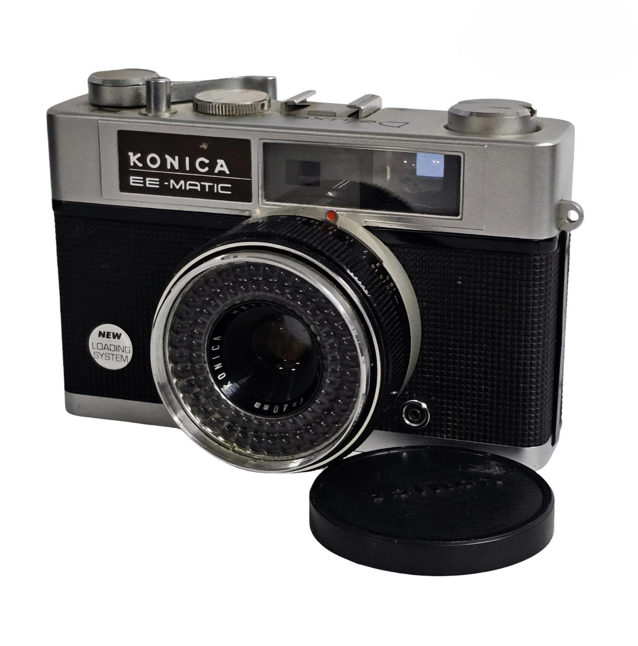 Konica Deluxe EE-matic with Konica Hexanon 1:2.8 lens, 9x13x7 cm.