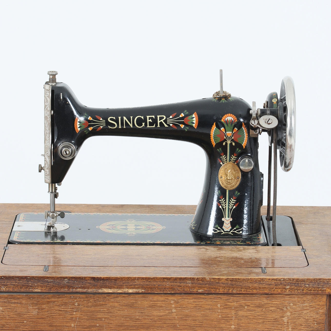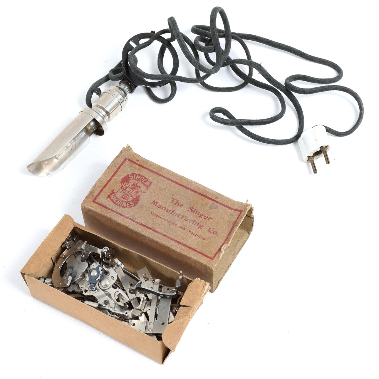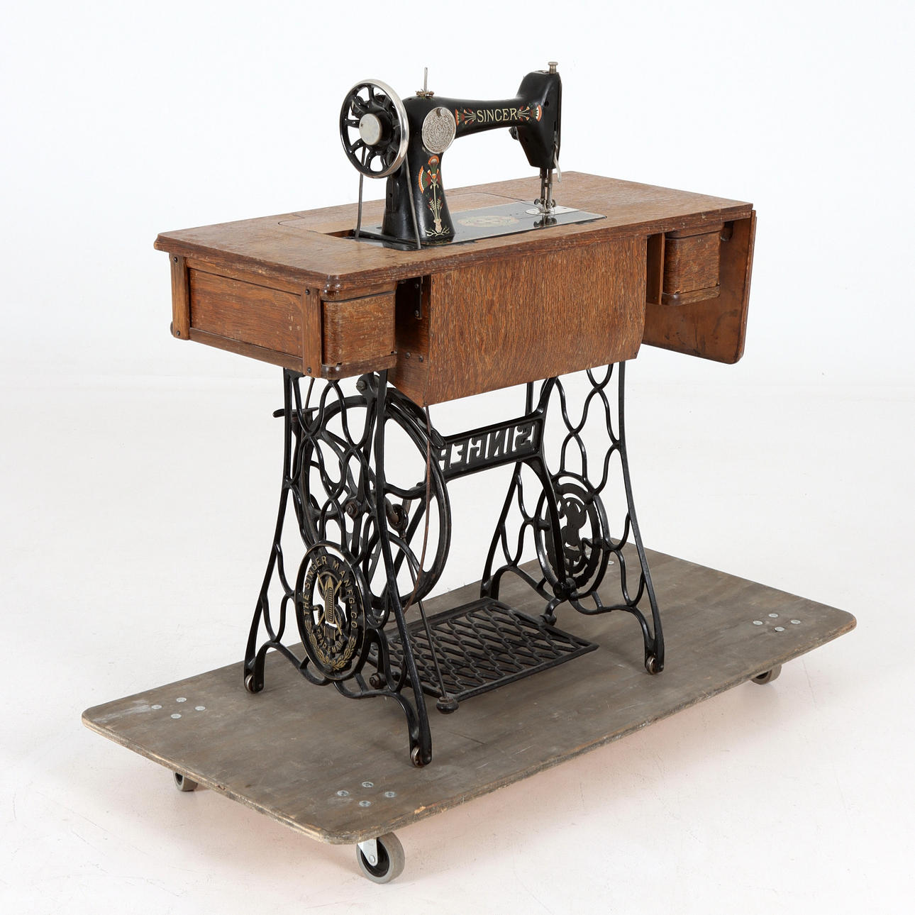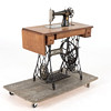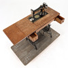 Chassis in cast iron length 87 cm, width 41 cm, height 74 cm. Sewing machine, height 23 cm. Accessories included.