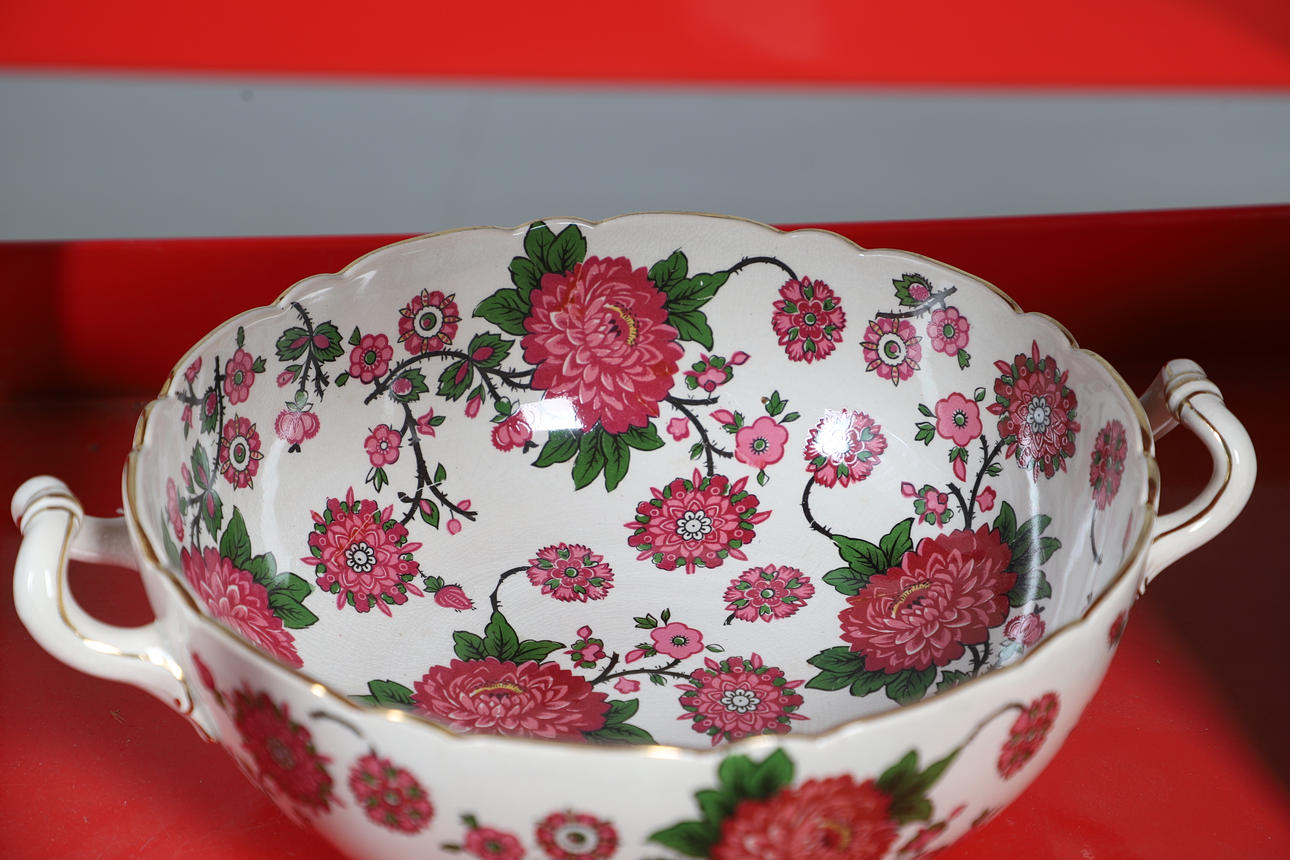 Shelley, large bowl sounds dull when tapped and cracked, set of bowls - some wear and crazing, a couple sound a little dull when tapped but generally they seem fine