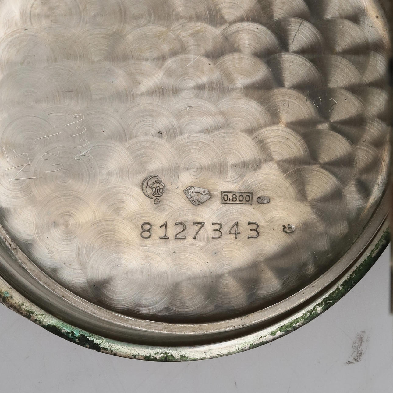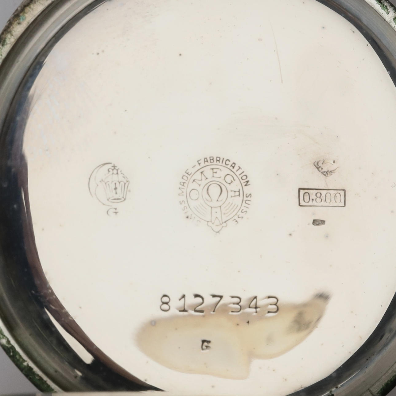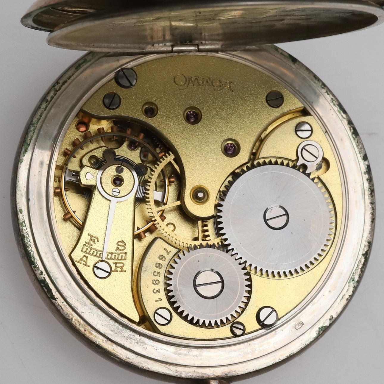 Pocket watch, Omega. Inner and outer case made of silver.