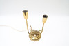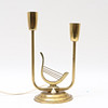 Brass, with harp decoration. Two light points.