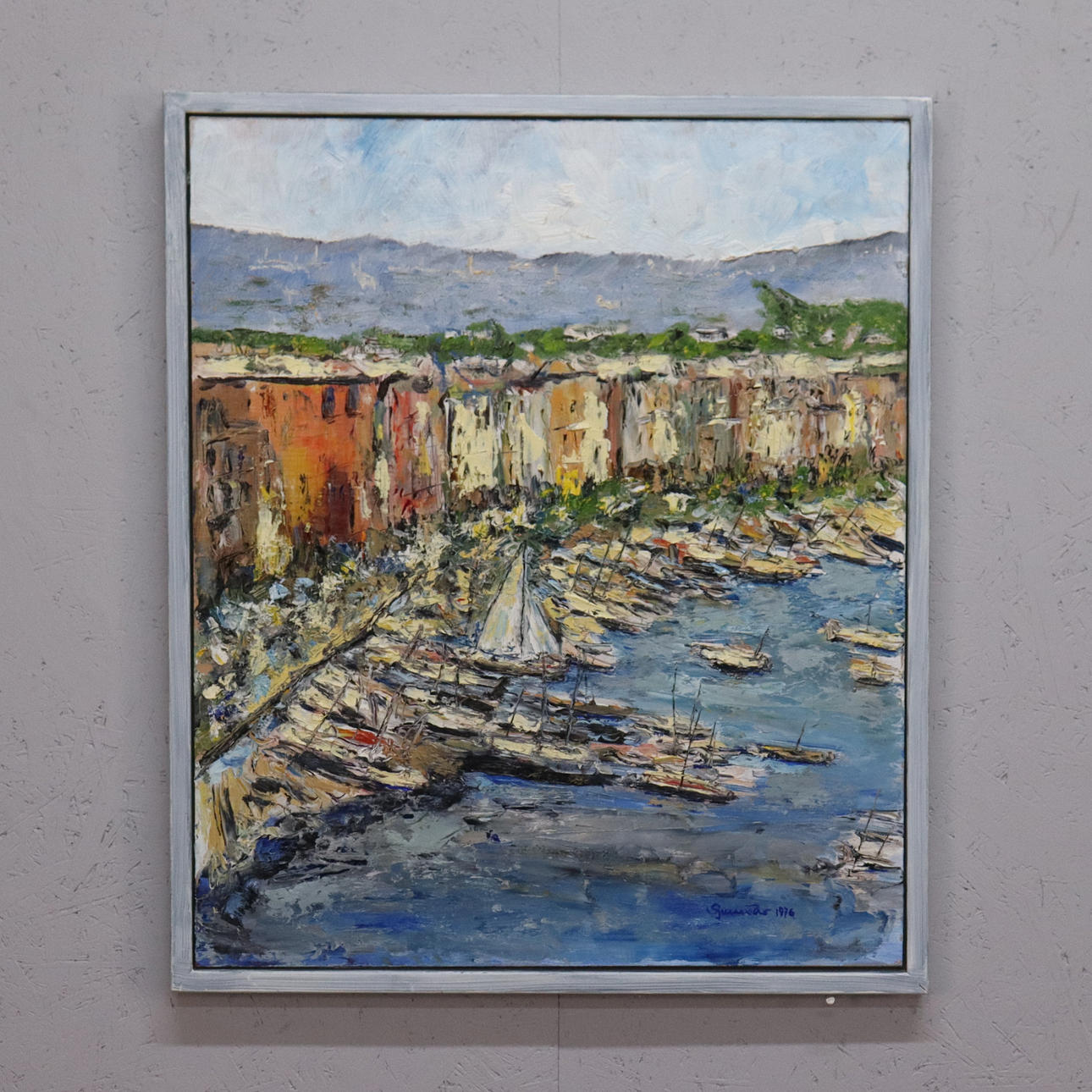 5025302. OIDENTIFIERAD KONSTNÄR. oil on panel, port city.