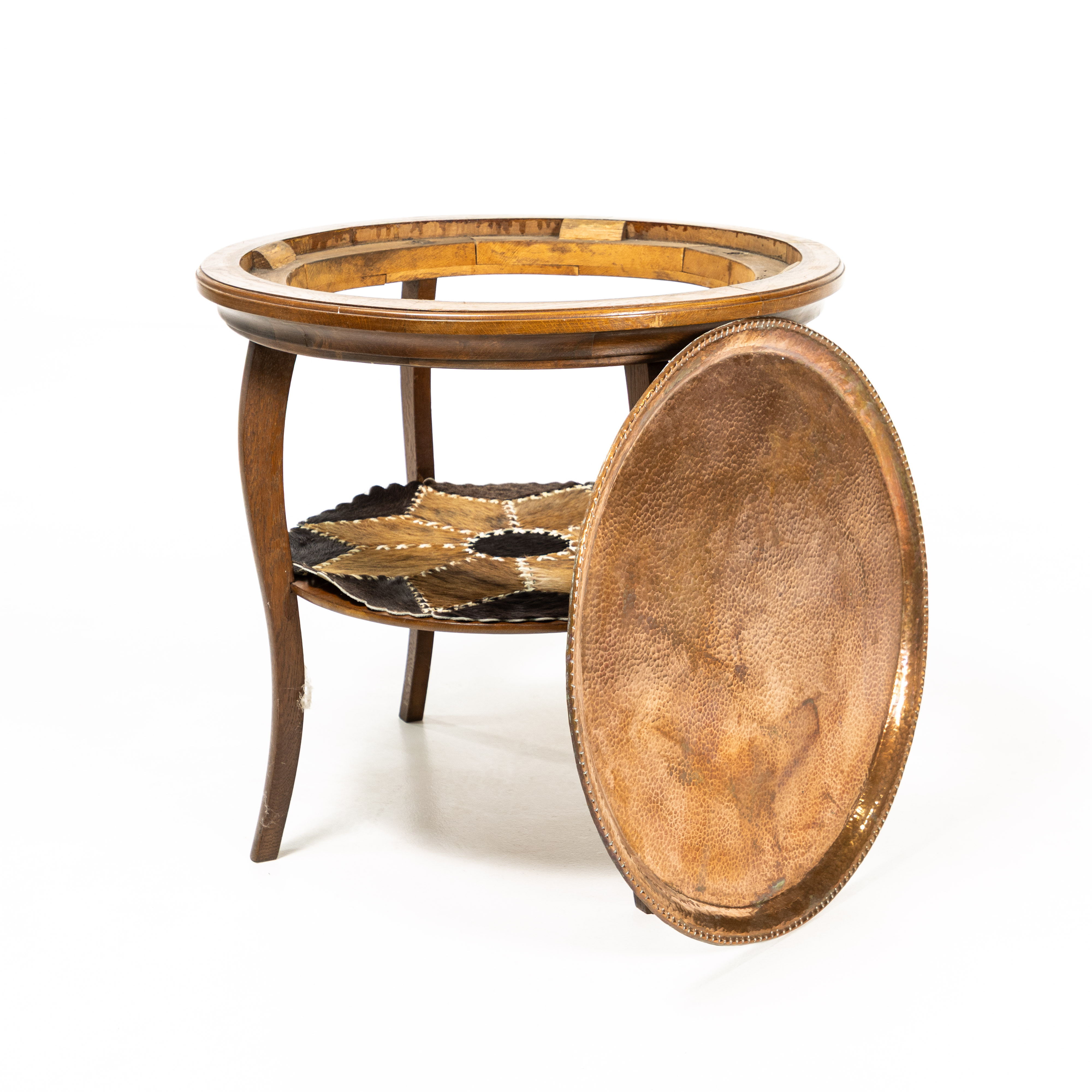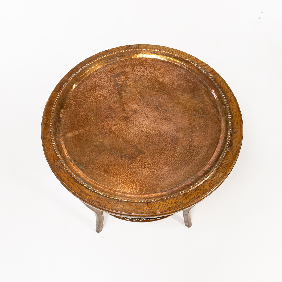 5025317. SMOKING TABLE. Oak/copper, 20th century.