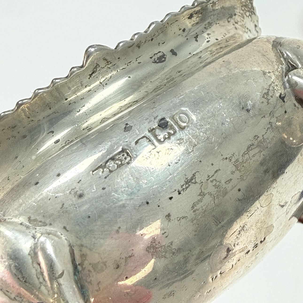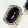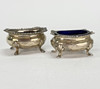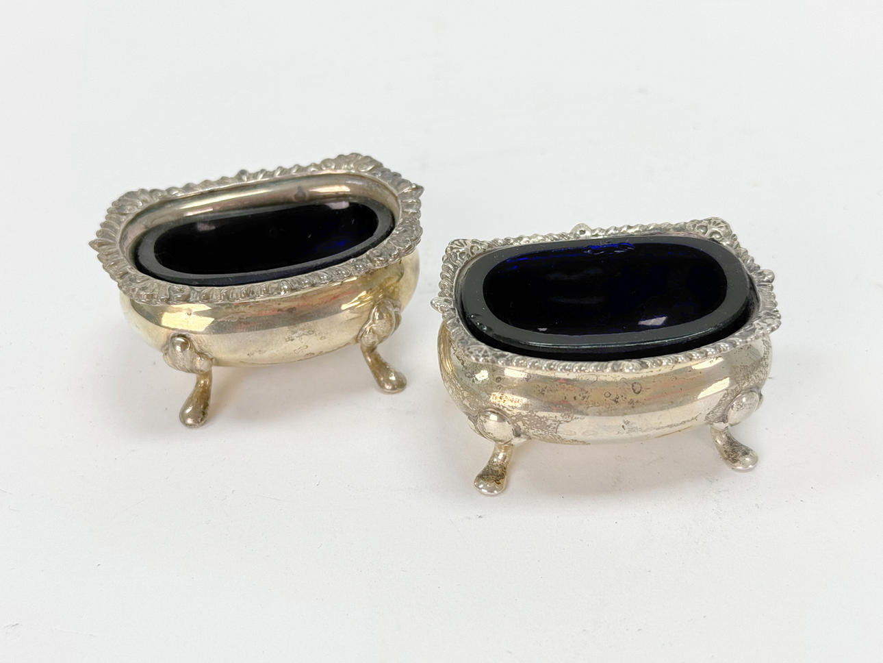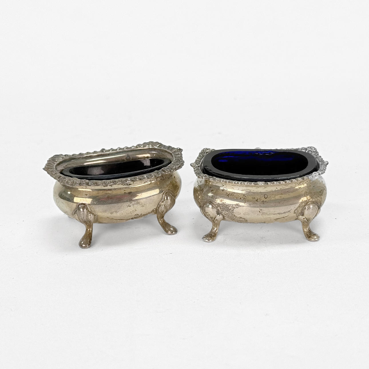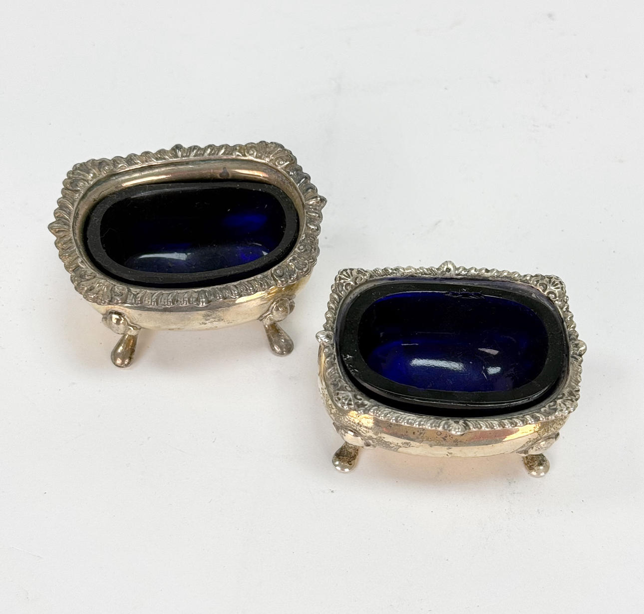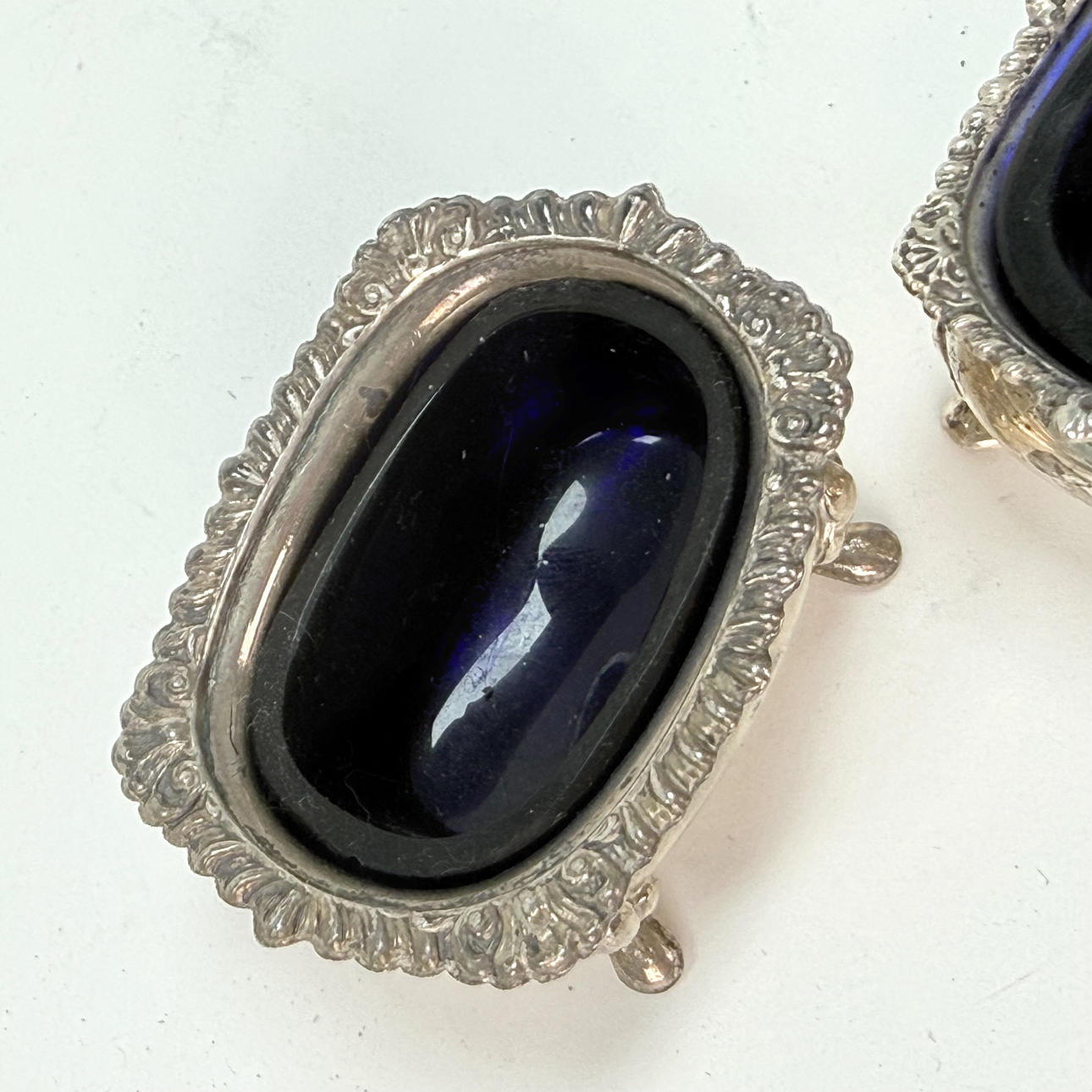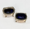 SALT TRAY - 2 pcs, silver stamp, blue glass insert.