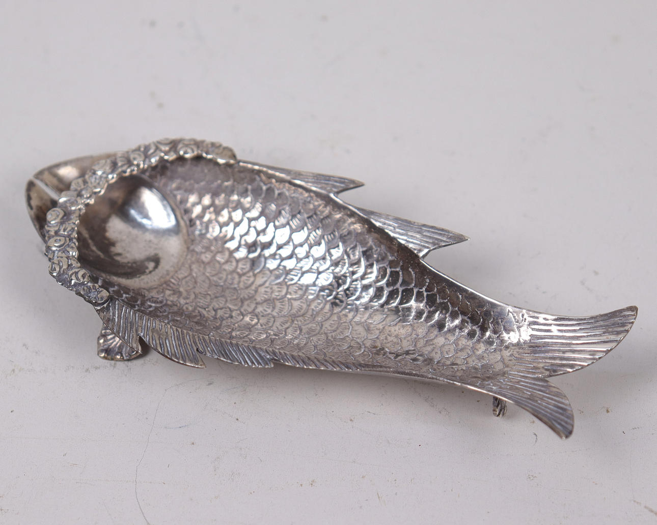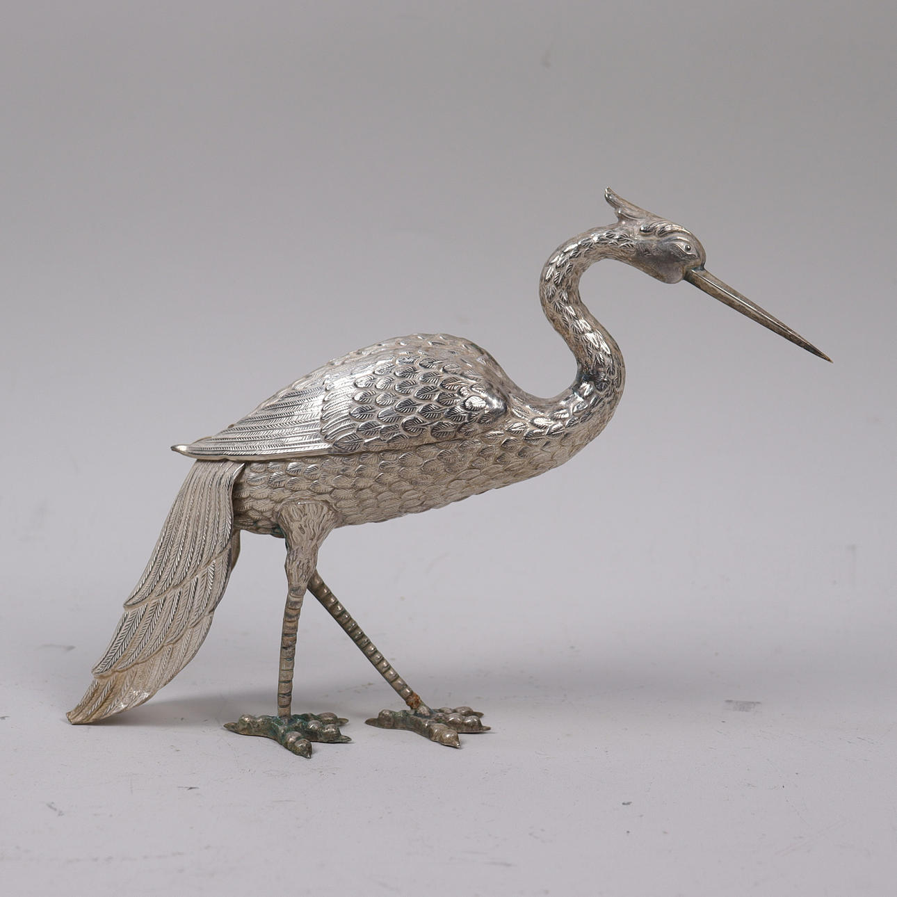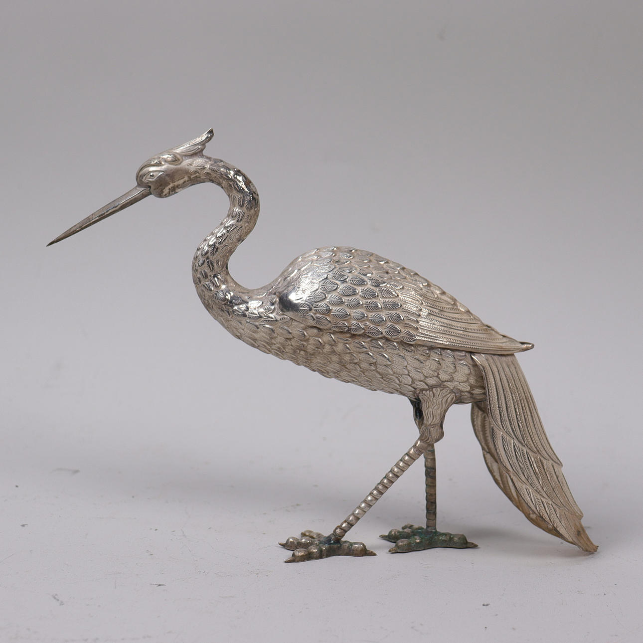 Heron's length 24 cm, height 17,5 cm. Length of fish 14.5 cm.