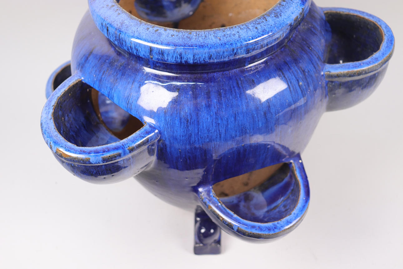 5025487. STRAWBERRY POT, Blue Glazed Terracotta.