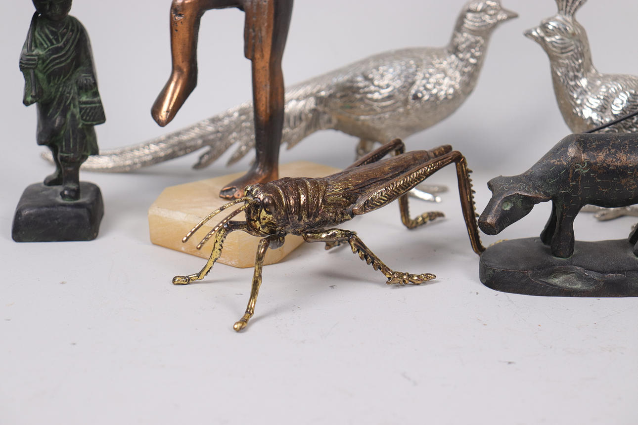 FIGURINES, metal, grasshopper, peacocks, etc., 6 pcs.