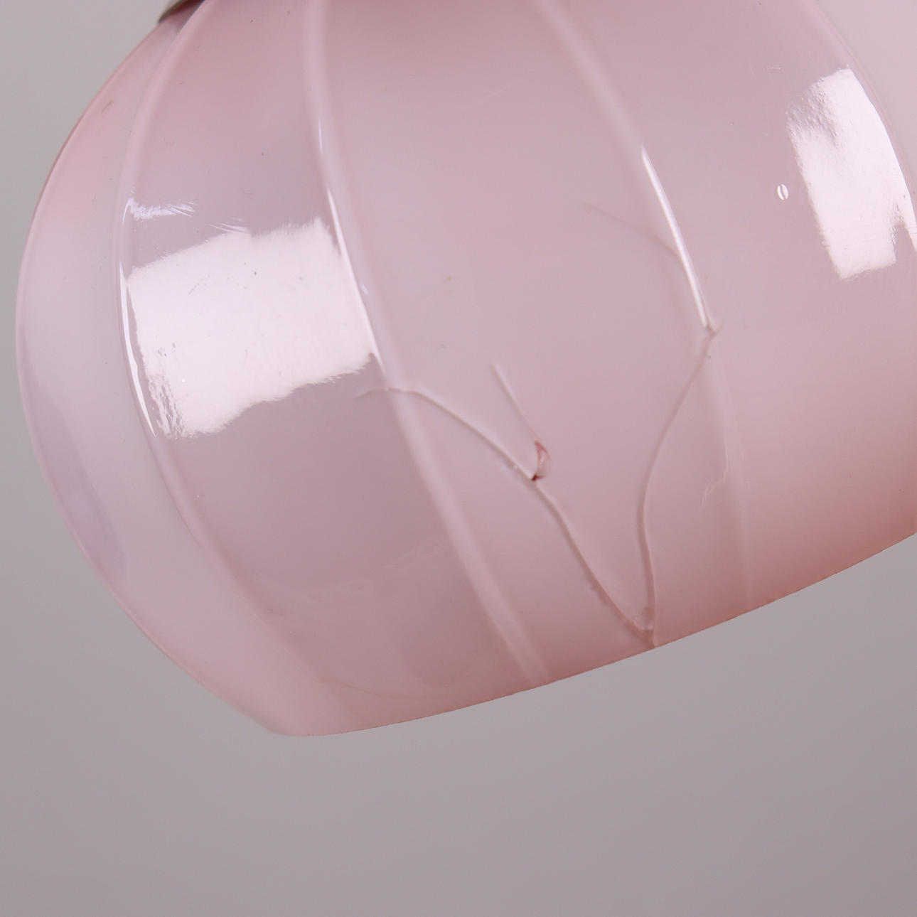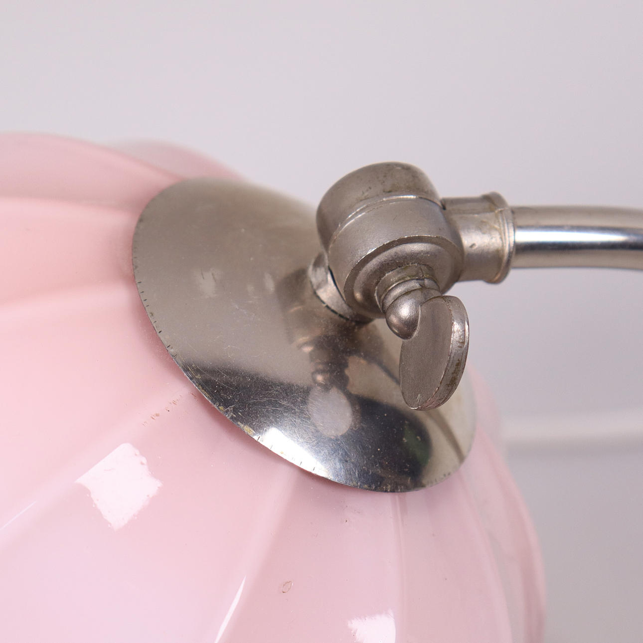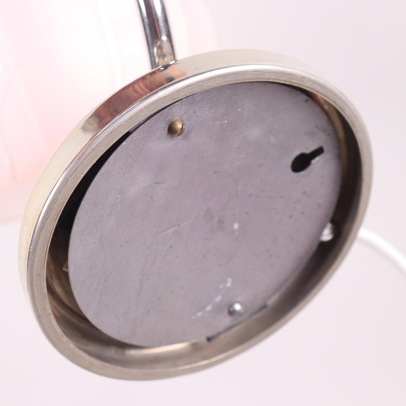 Cup made of rose tinted glass, one bright spot, footplate with switch, rotatable. Height of picture 22 cm.