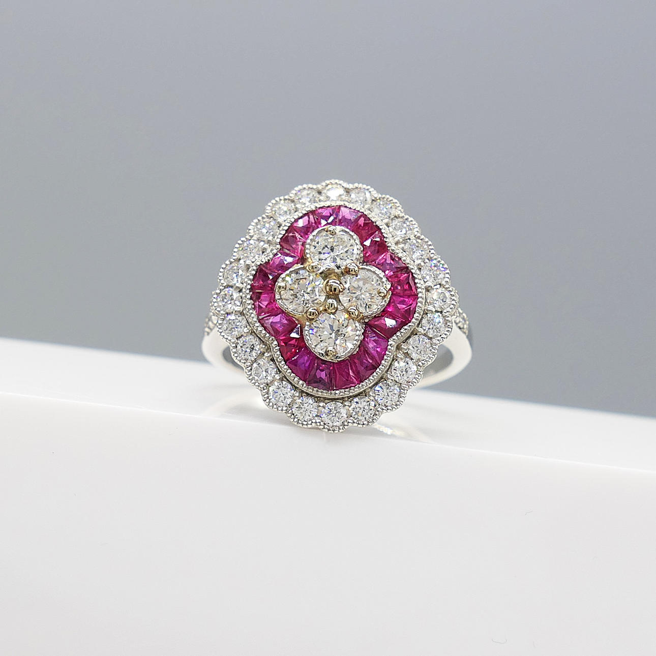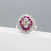 A platinum quatrefoil style ring set with 1.00cts diamonds and 0.78cts rubies