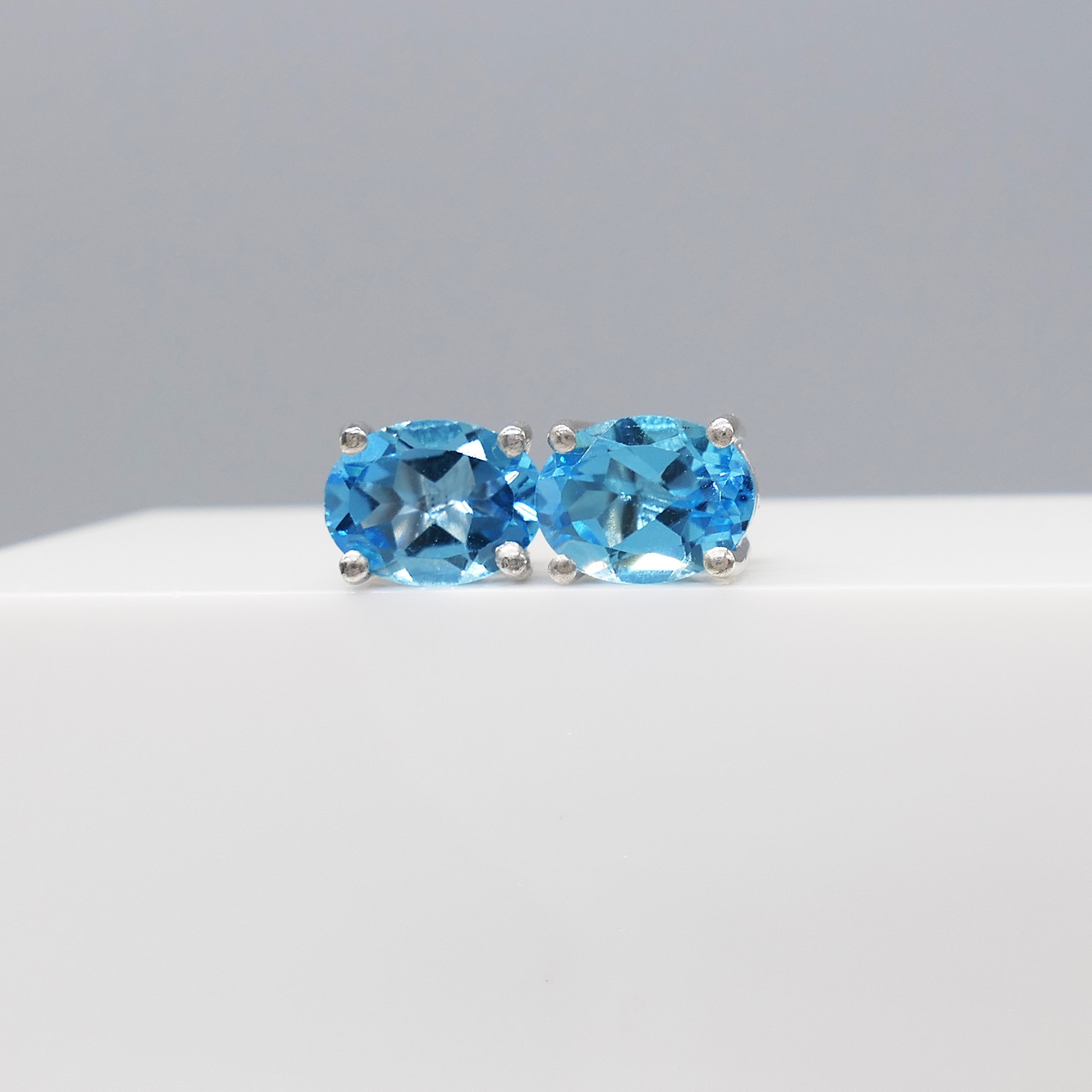 5025705. NATURAL BLUE TOPAZ ear studs.