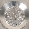 Circular model with relief decoration depicting a biblical motif from the story of King David and Bathsheba. Central scene with figures in high relief, surrounded by a plain rim with the inscription: "Kung David får syn på Batseba – Urias hustru".