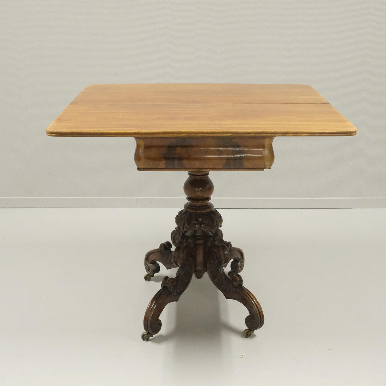 On casters. Height 76 cm. Length 89 cm. Width 44 cm. Foldable, approx. 89x88 cm.