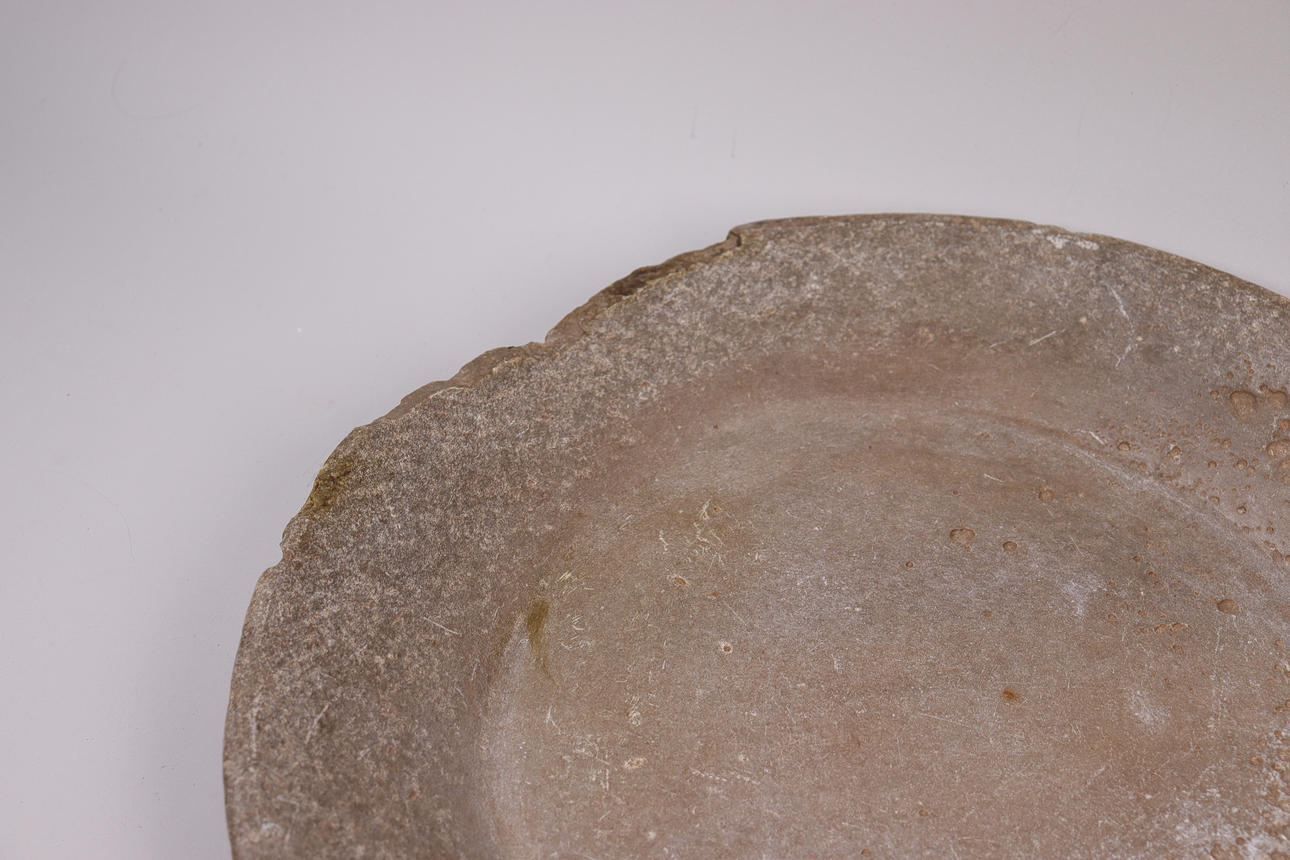 5026001. BOWL with handle, stone.
