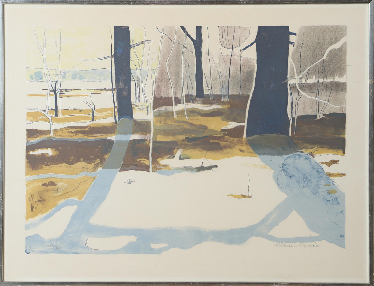 HÅKAN THORSÉN. Forest landscape, colour lithograph, signed.