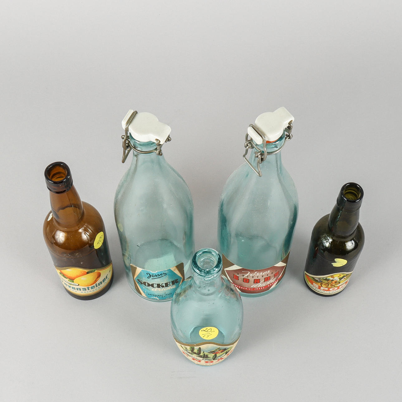 With labels from Bryggeriet Jösse Arvika, Karlstads Bryggeri, and Åmåls ny bryggeri.