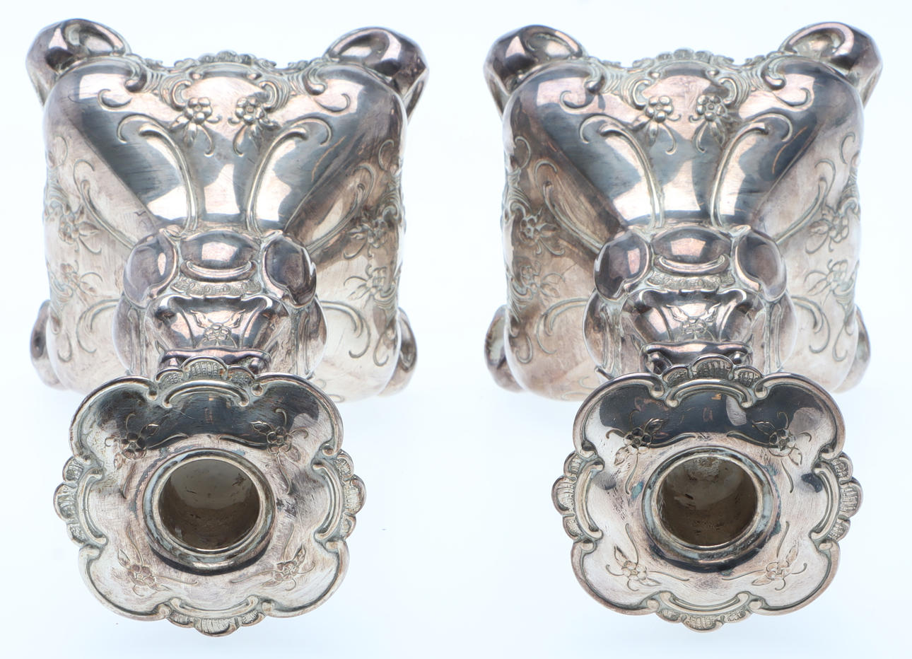 5026302. CANDLESTICKS, 1 pair, nickel silver, Rococo style.